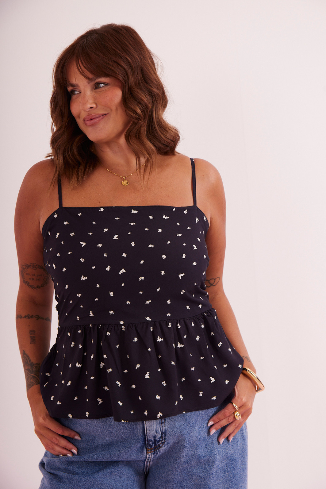 Essa blusa regata em com estampa floral fundo preto é perfeita para dias leves e com frescor. Com alças finas ajustáveis, o modelo possui decote quadrado que valoriza o colo e caimento soltinho na barra, garantindo conforto e leveza ao look. Ideal para combinar com jeans, shorts ou saias, essa peça versátil vai do casual ao passeio com muito estilo.