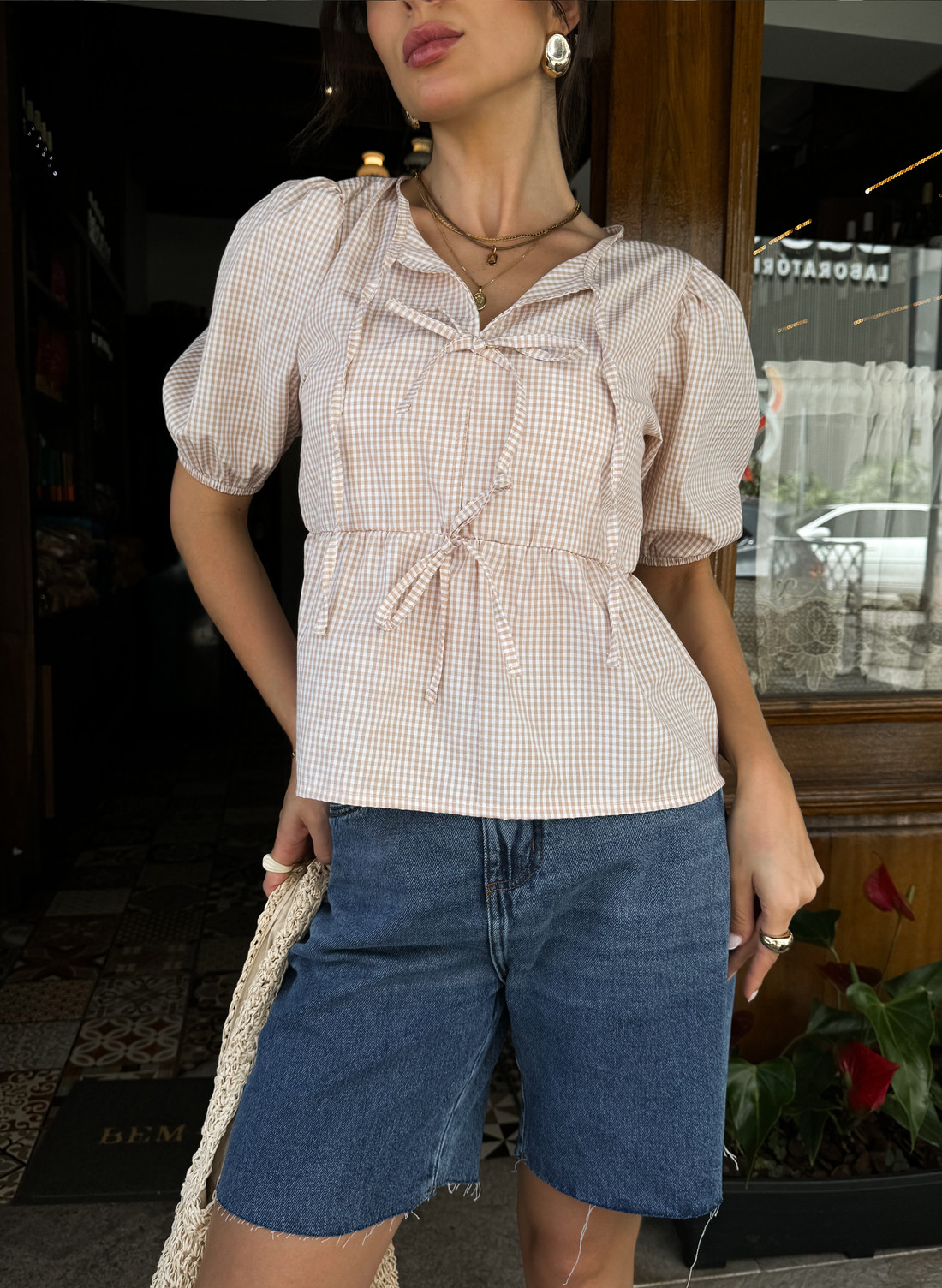 Nossa blusa é encantadora que une romantismo e delicadeza. Nossa blusa de manga curta traz um charme especial com a abertura frontal e o fechamento em friso, formando tres lacinhos que deixam o visual ainda mais romantico. As mangas bufantes adicionam charme, enquanto o tecido em viscose garante um caimento suave e confortável. Uma escolha perfeita para compor looks delicados e cheios de charme.