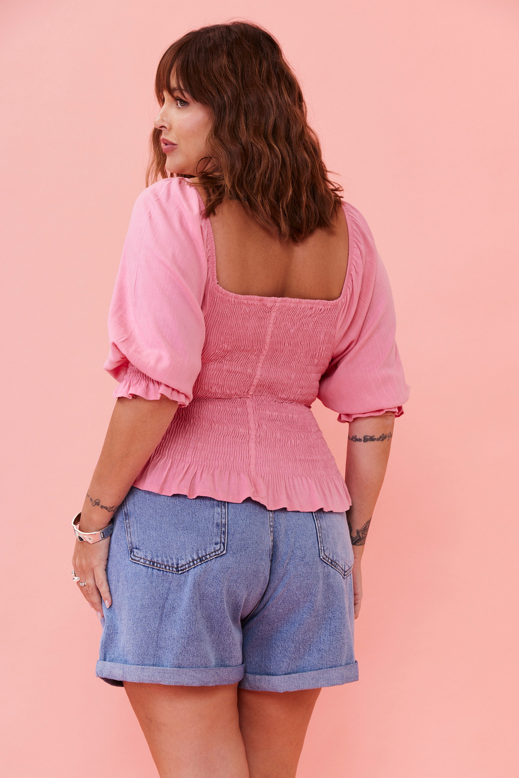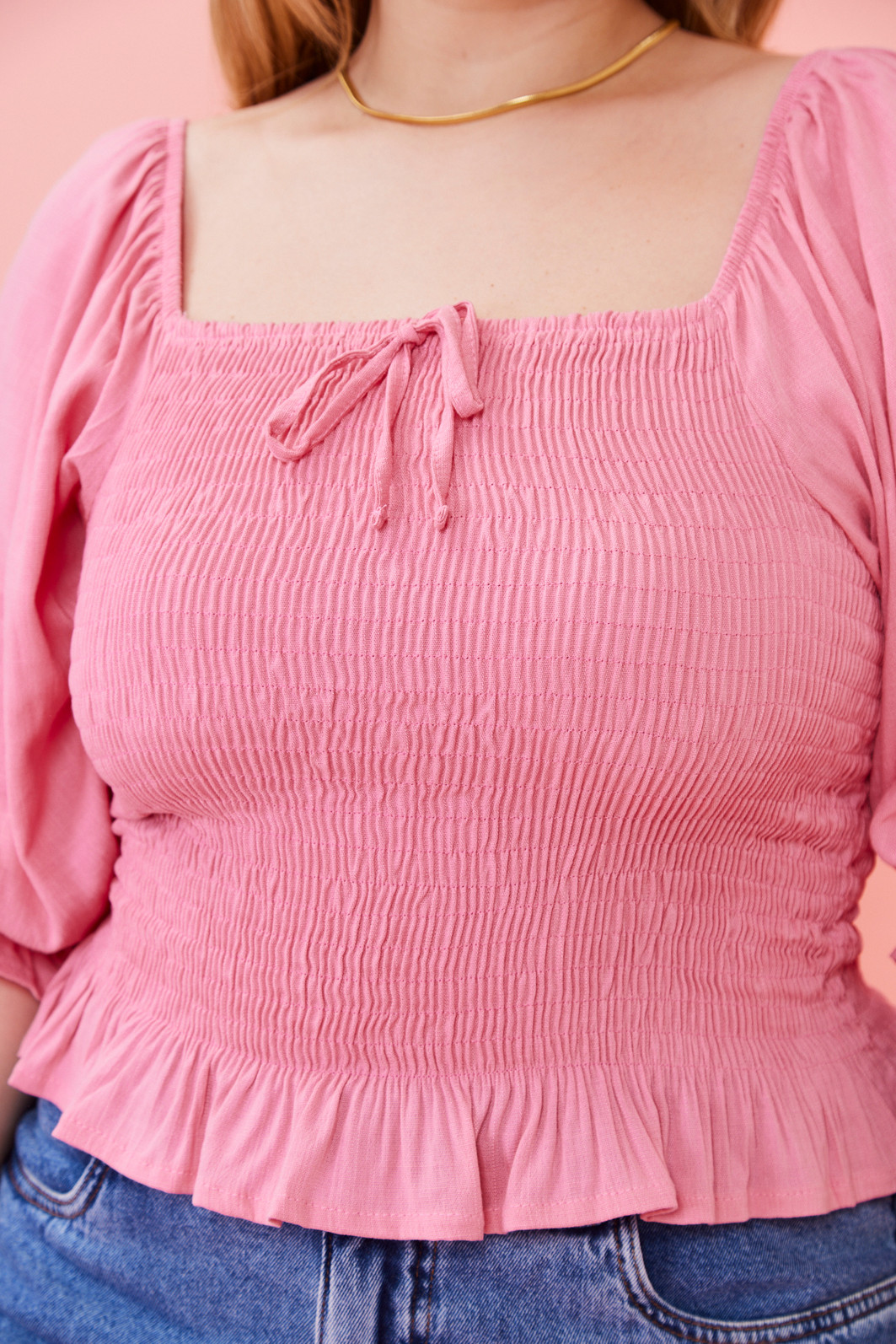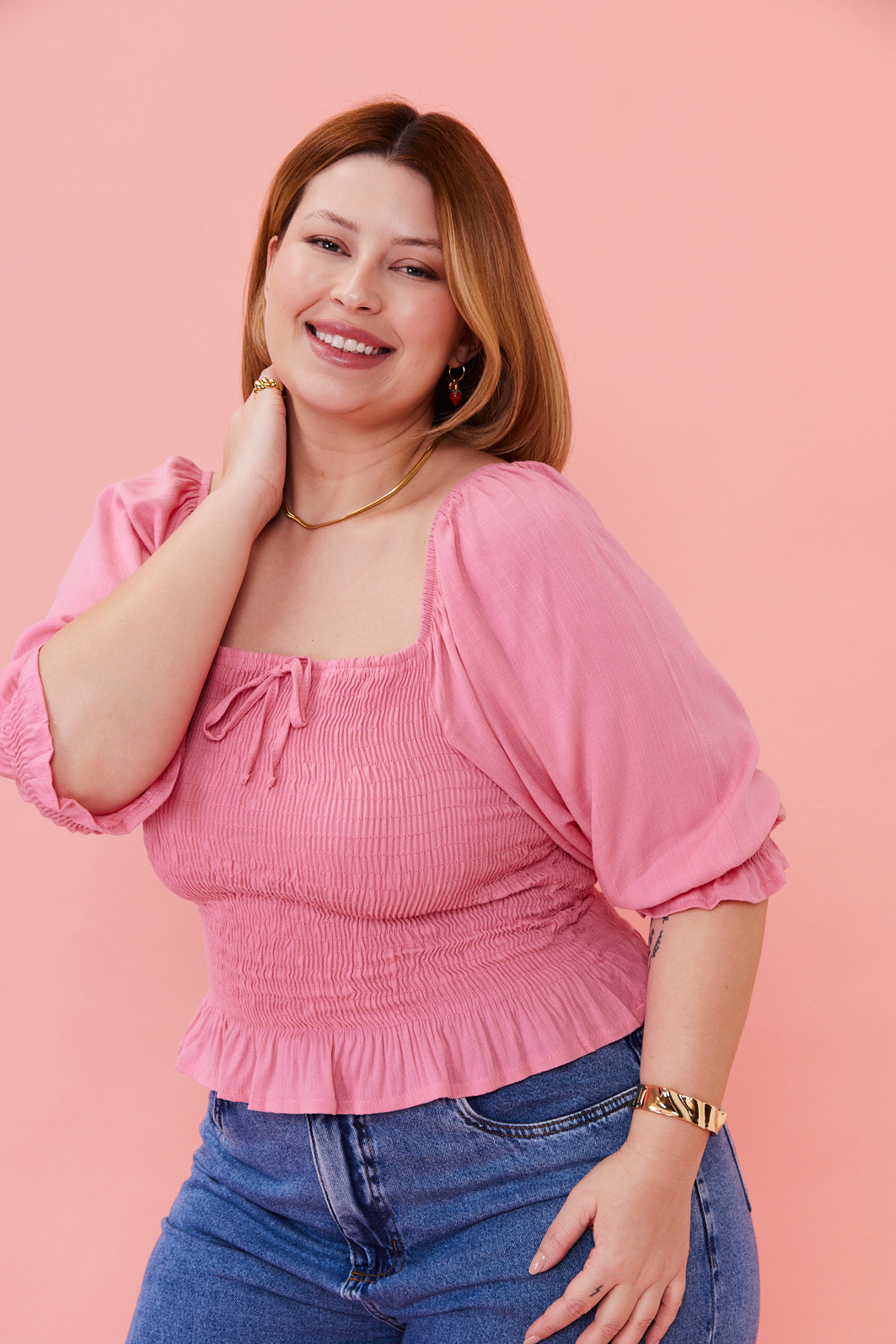 Blusa cropped de manga curta com corpo em lastex, que valoriza o caimento e garante conforto. Na parte frontal, o friso com amarração traz um charme delicado, enquanto o babado nas mangas acrescenta um toque feminino e romântico. Uma peça versátil e encantadora para compor looks cheios de leveza.