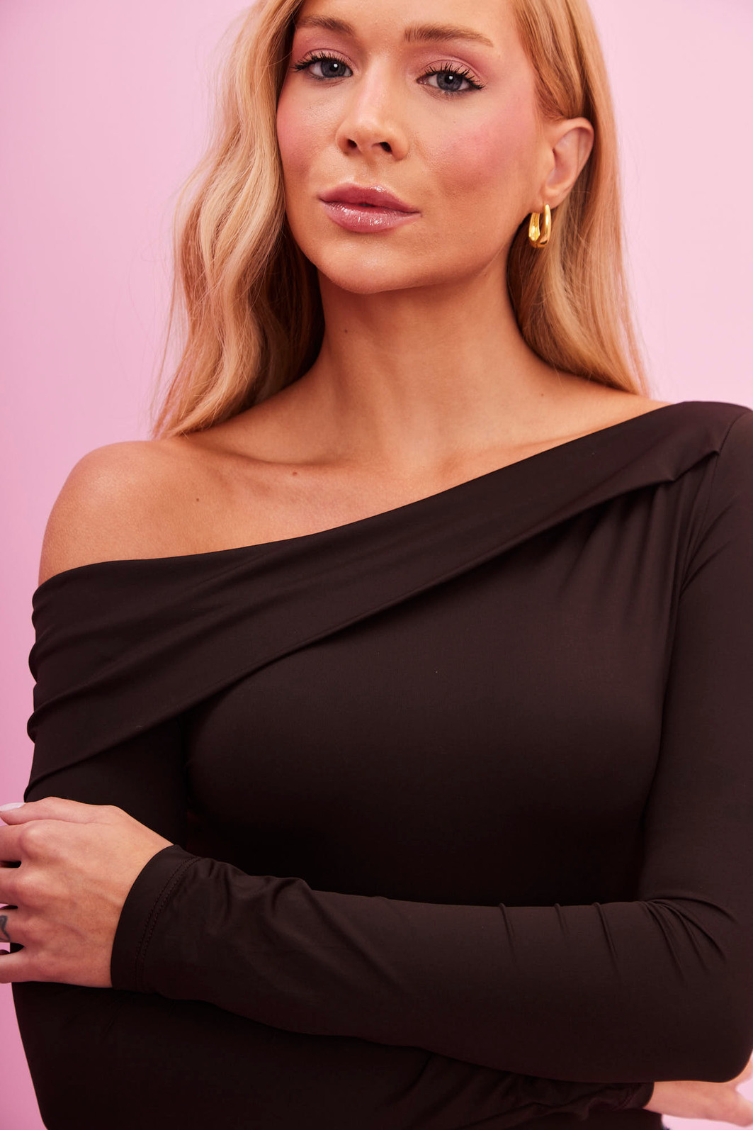 Body em poliamida de manga longa, que une conforto e sofisticação em uma única peça. O grande destaque fica por conta do decote com drapeado lateral, que valoriza a silhueta e traz um toque elegante e moderno ao visual.