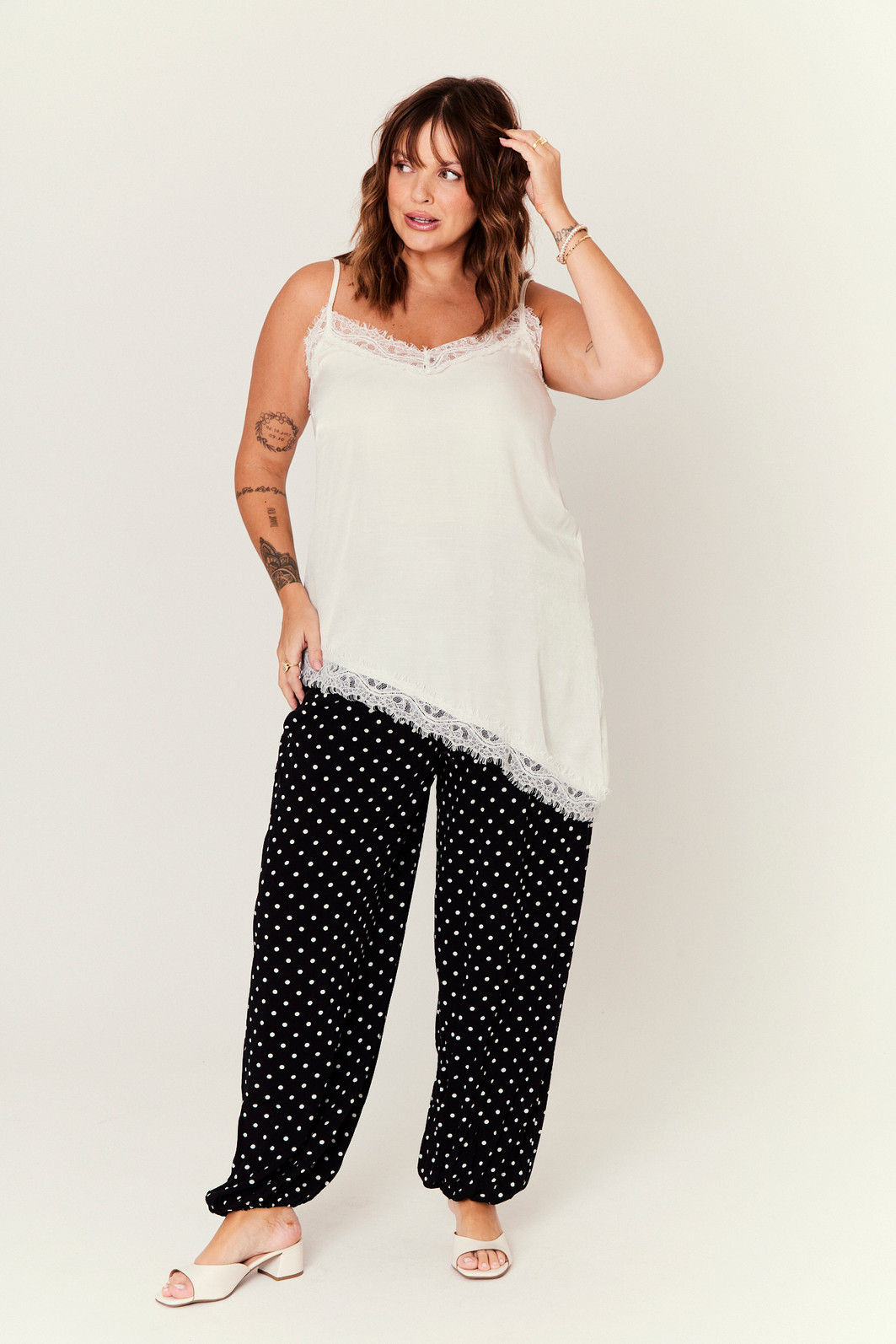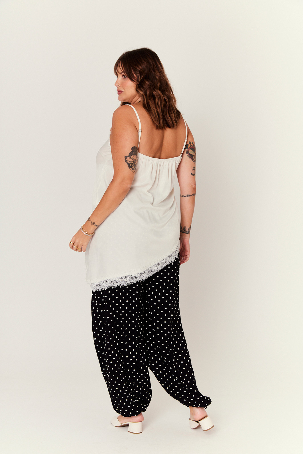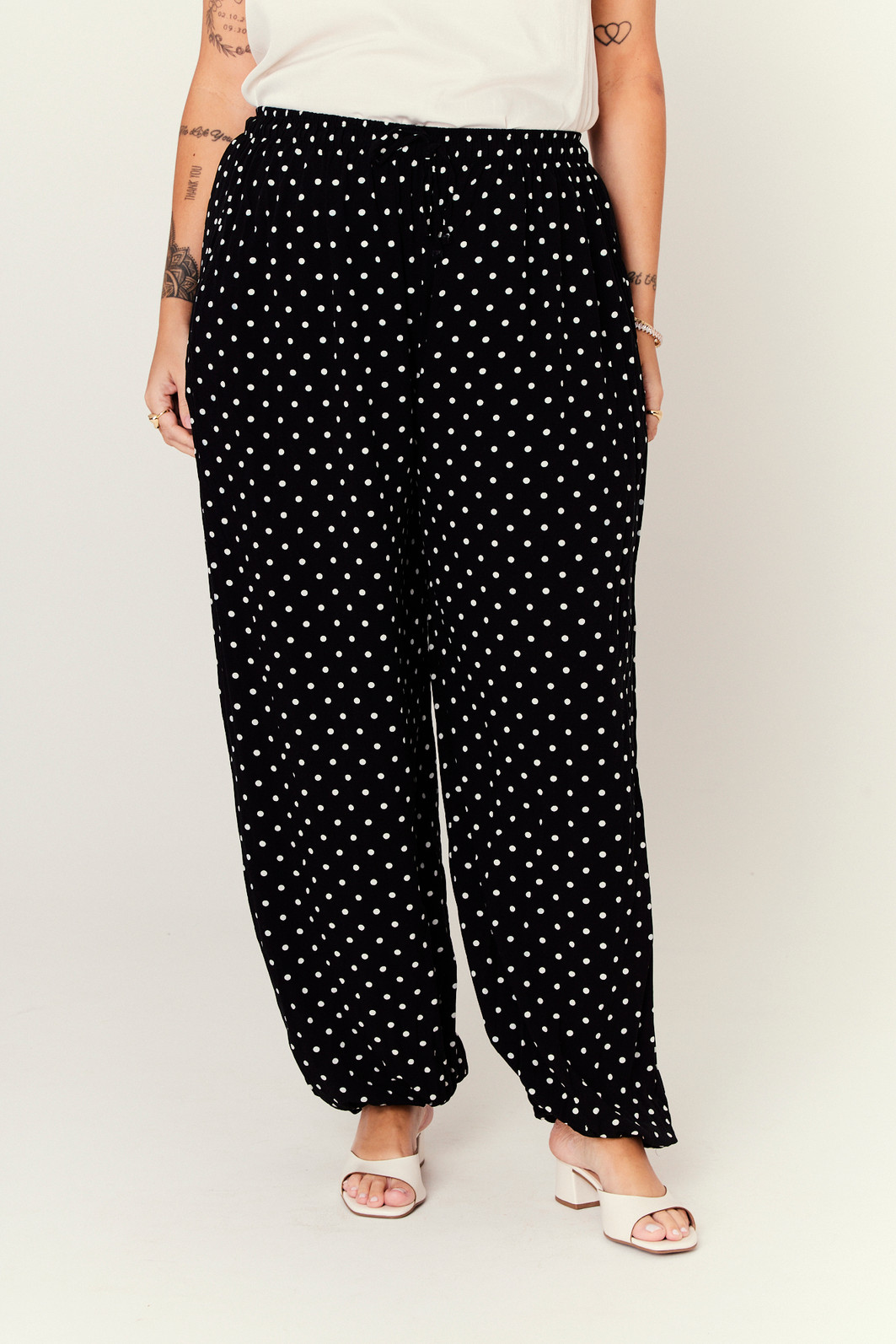 Estilo e conforto em uma só peça! A Calça Aladim Poá Preta é perfeita para quem busca um visual leve, moderno e cheio de personalidade. Com modelagem solta, cós e tornozelos com elástico, ela proporciona liberdade de movimento e um caimento impecável. O tecido leve e o design soltinho garantem conforto para o dia a dia, viagens ou momentos de lazer. A estampa clássica de poás brancos sobre o fundo preto traz um toque retrô e elegante.