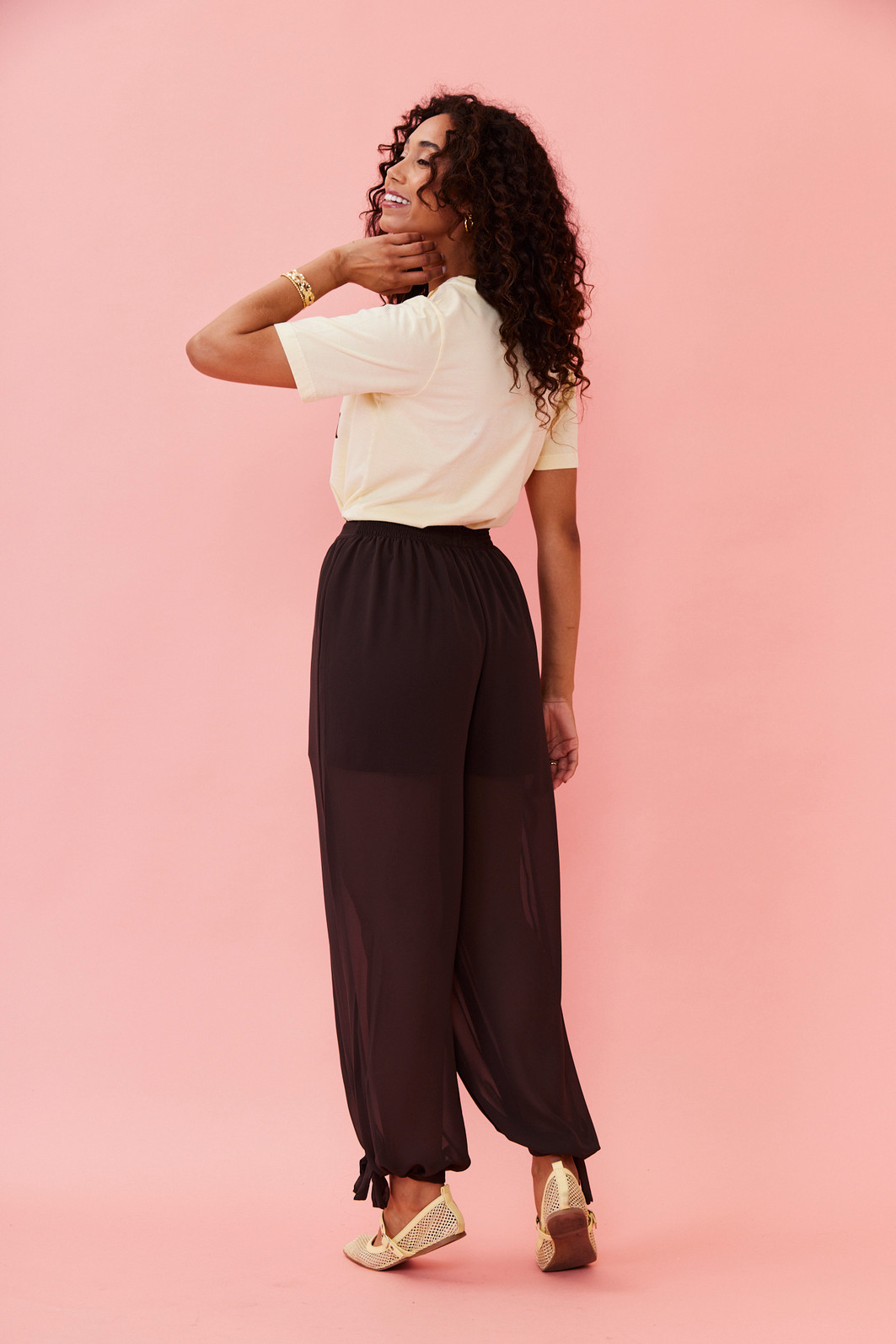 Nossa Calça Aladim é a combinação perfeita entre conforto, estilo e praticidade. Com modelagem soltinha e caimento leve, ela traz aquele toque despojado que amamos, sem abrir mão da elegância. O cós elástico garante ajuste perfeito na cintura, enquanto os punhos ajustáveis com amarração na barra permitem um toque personalizado ao look.Perfeita para compor looks casuais, viagens, ou até mesmo um momento relax em casa, versatilidade é o nome dela! ✨