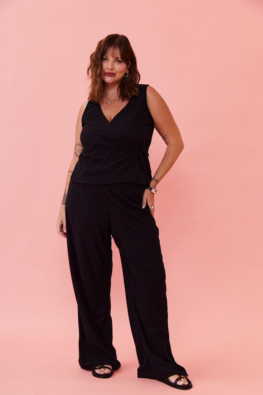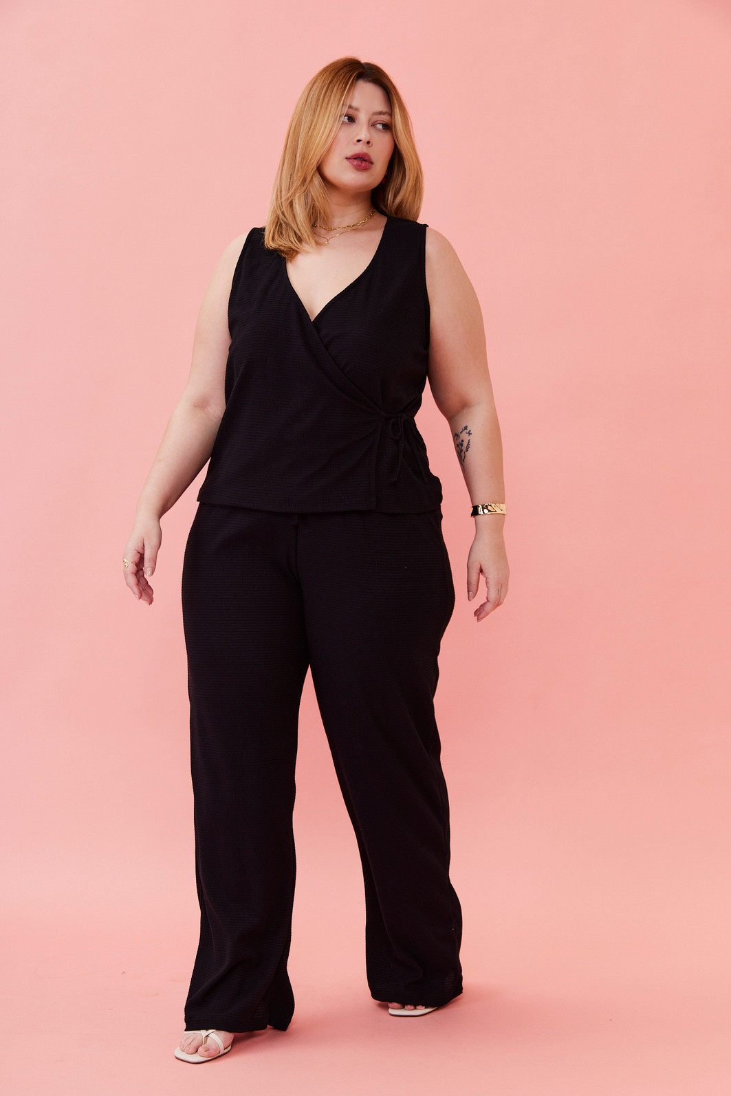 Nossa calça com caimento e super confortavel, é sua escolha perfeirta. Com elástico na cintura, ela garante uma sensação de bem-estar ao vestir, além de um visual elegante e versátil. Ideal para quem busca praticidade sem abrir mão do charme!