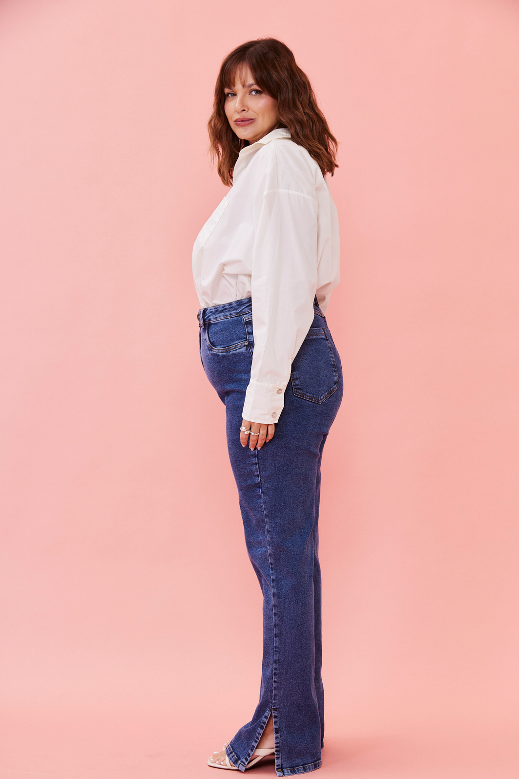 O jeans que é indispensável no seu guarda-roupa. Com cintura alta e caimento impecável, ela realça a silhueta e oferece conforto o dia todo. Sua modelagem justa é perfeita para criar looks descomplicados. Possui elastano se adequando ao seu corpo perfeitamente. Versátil e prática, vai do estilo casual ao mais arrumado.