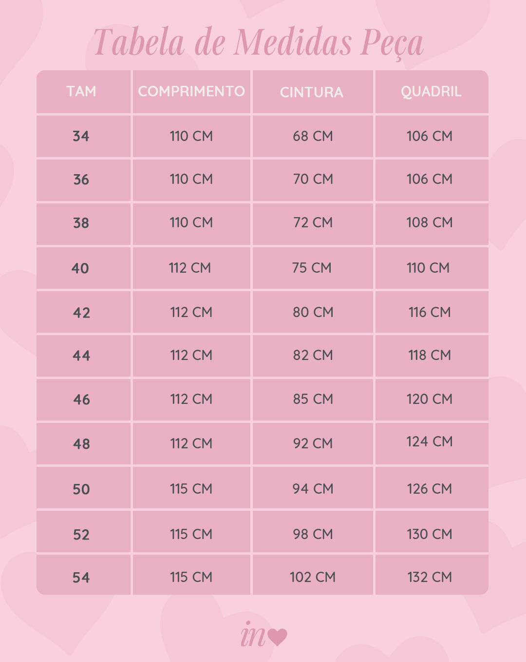 Medidas Jes: Quadril: 122 / Cintura 100 / Busto 110