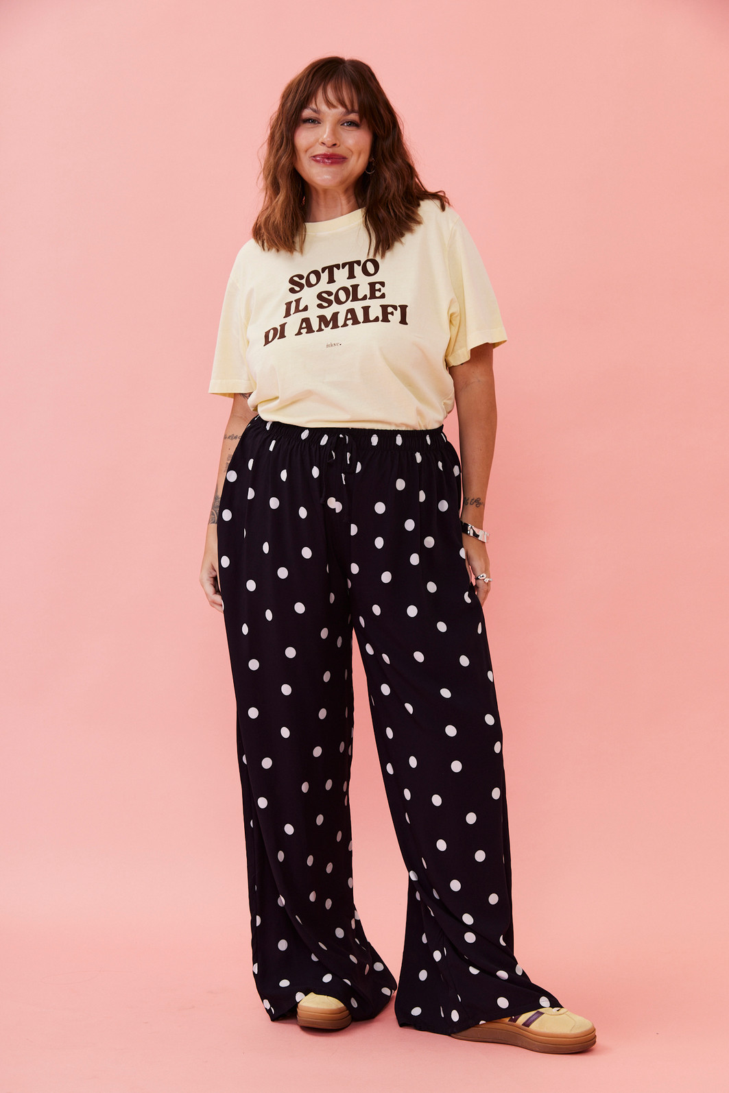 Essa calça pantalona é confeccionada 100% em viscose, garantindo um toque suave e fresco, ideal para os dias mais quentes. A modelagem ampla proporciona liberdade de movimento e um caimento elegante. A cintura com elástico oferece praticidade e um ajuste perfeito ao corpo, enquanto os bolsos laterais acrescentam funcionalidade ao visual.