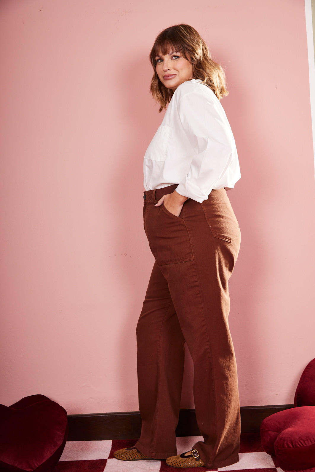 Calça reta em sarja, com dois bolsos faca frontais e passantes para cinto, que garantem praticidade e estilo. Possui fechamento com botões personalizados e um toque macio que proporciona conforto ao vestir. Uma peça versátil, ideal para compor looks do dia a dia.