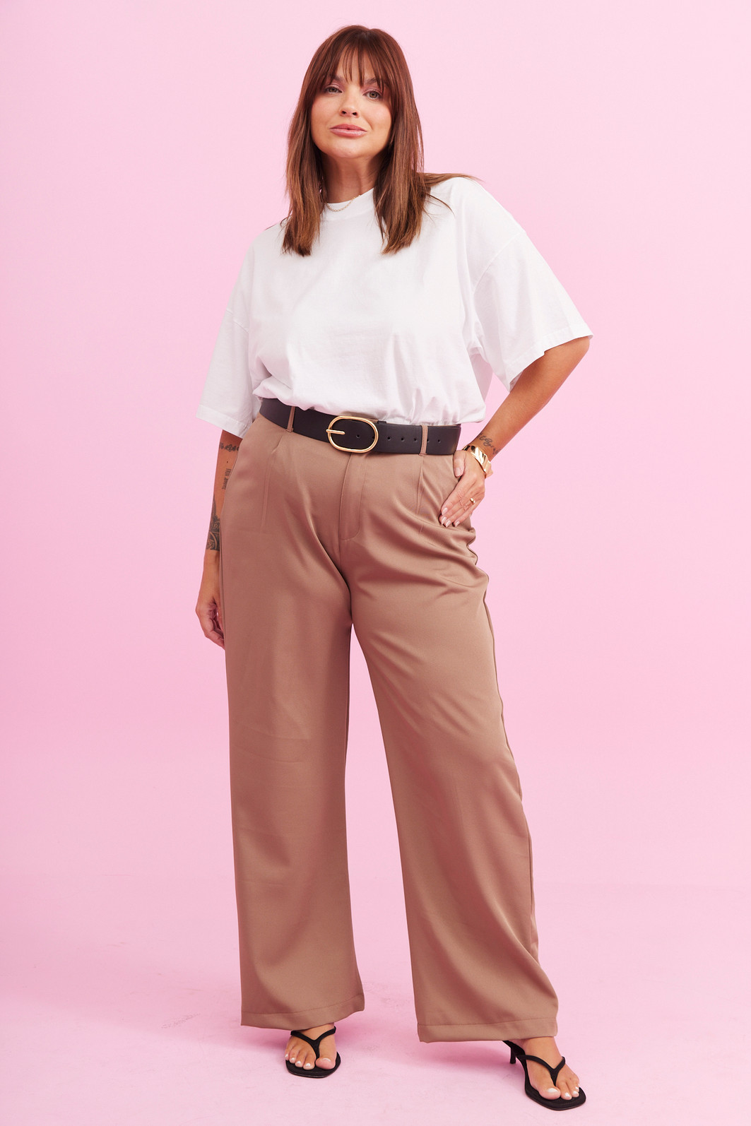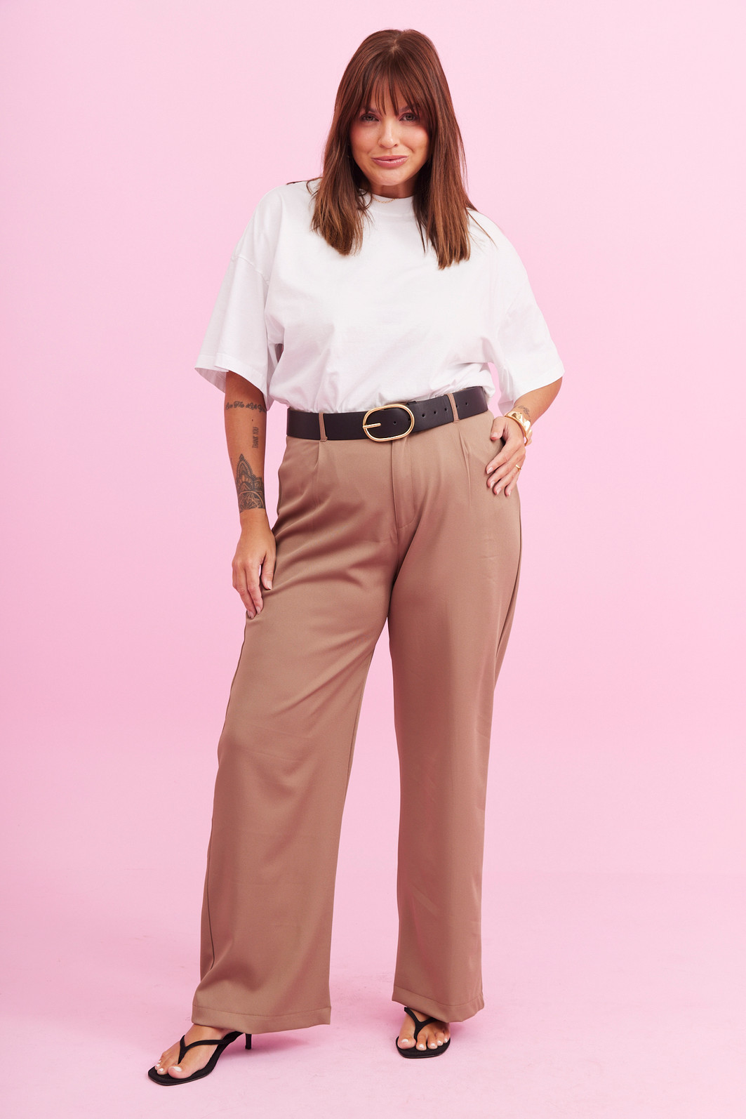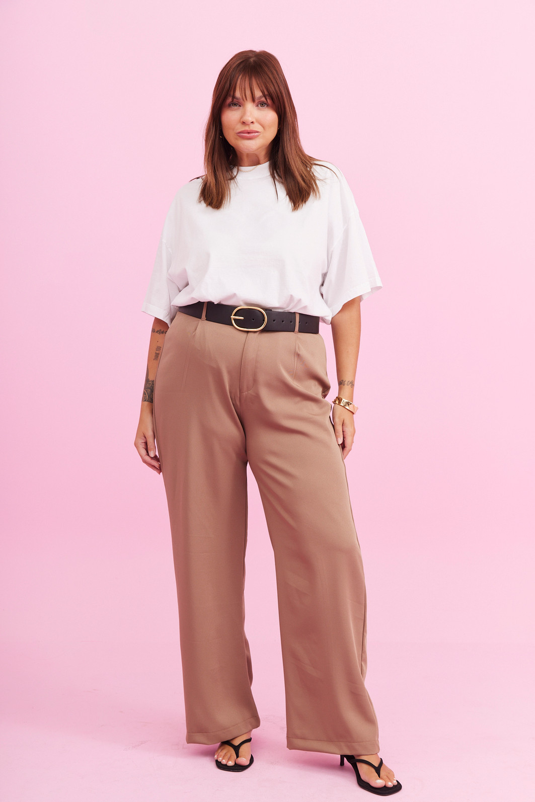Calça pantalona em tecido leve e sofisticado, com caimento fluido que valoriza a silhueta de forma elegante e confortável. Sua modelagem de cintura alta alonga o corpo, enquanto as pregas frontais trazem um charme clássico e atemporal à peça. O fechamento por botão e zíper garante um ajuste perfeito, ideal para compor looks que vão do casual chic ao mais refinado. Uma peça versátil, delicada e cheia de personalidade para acompanhar você em todos os momentos.