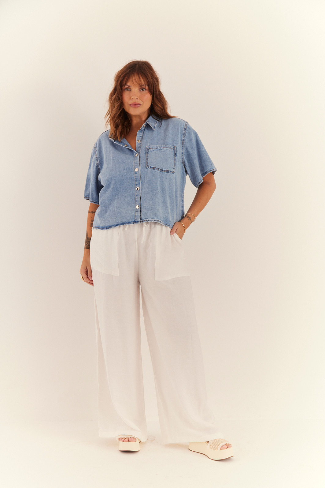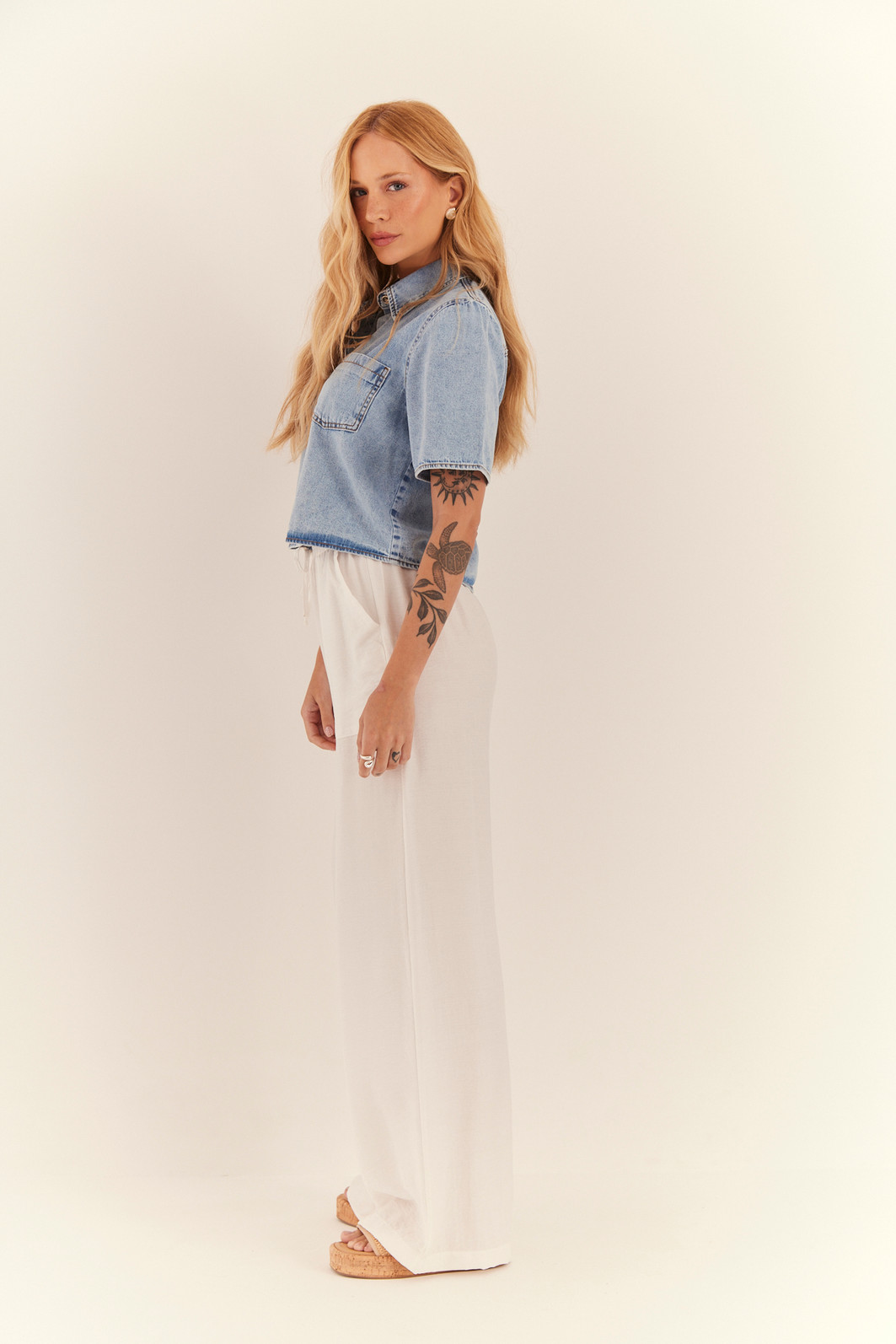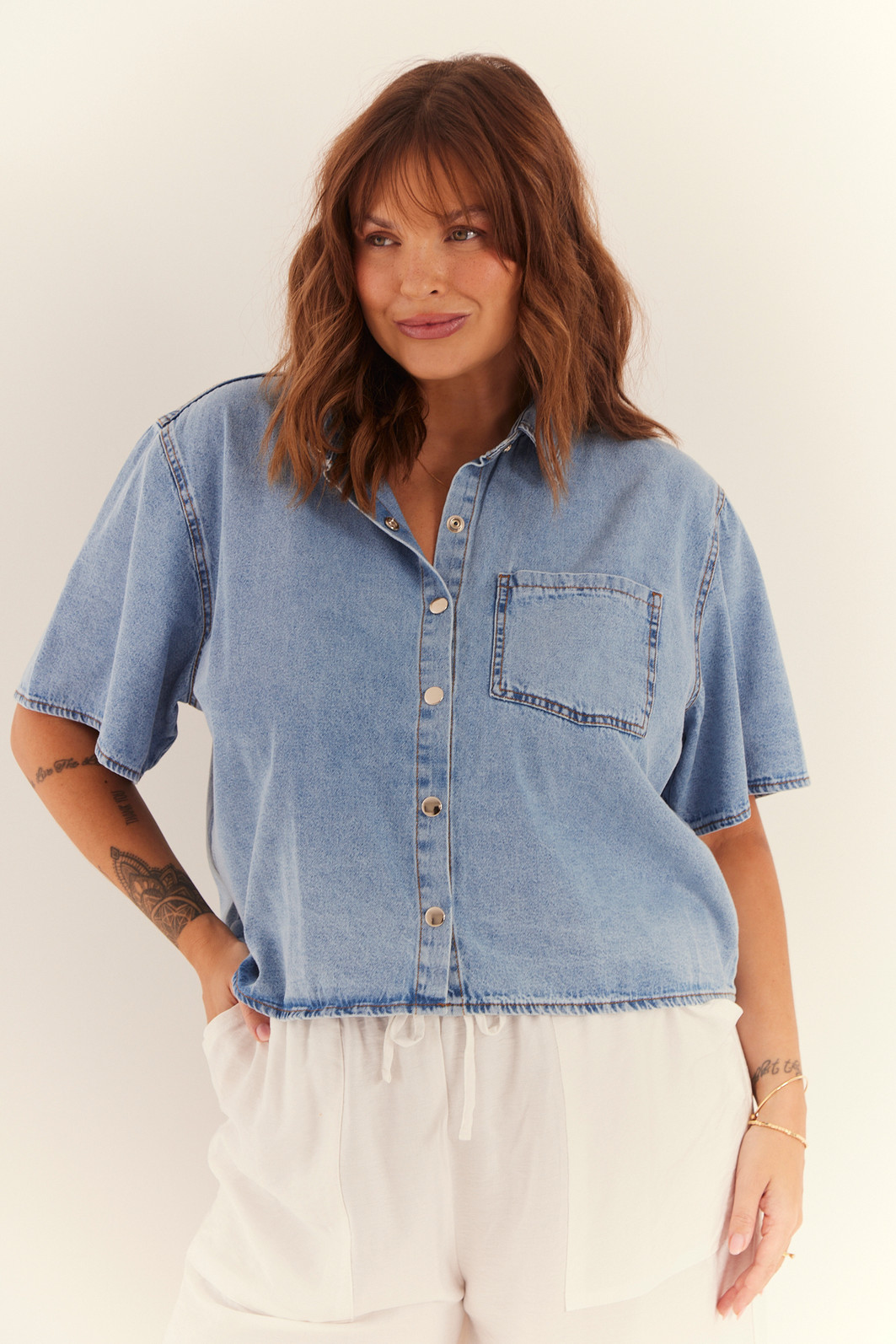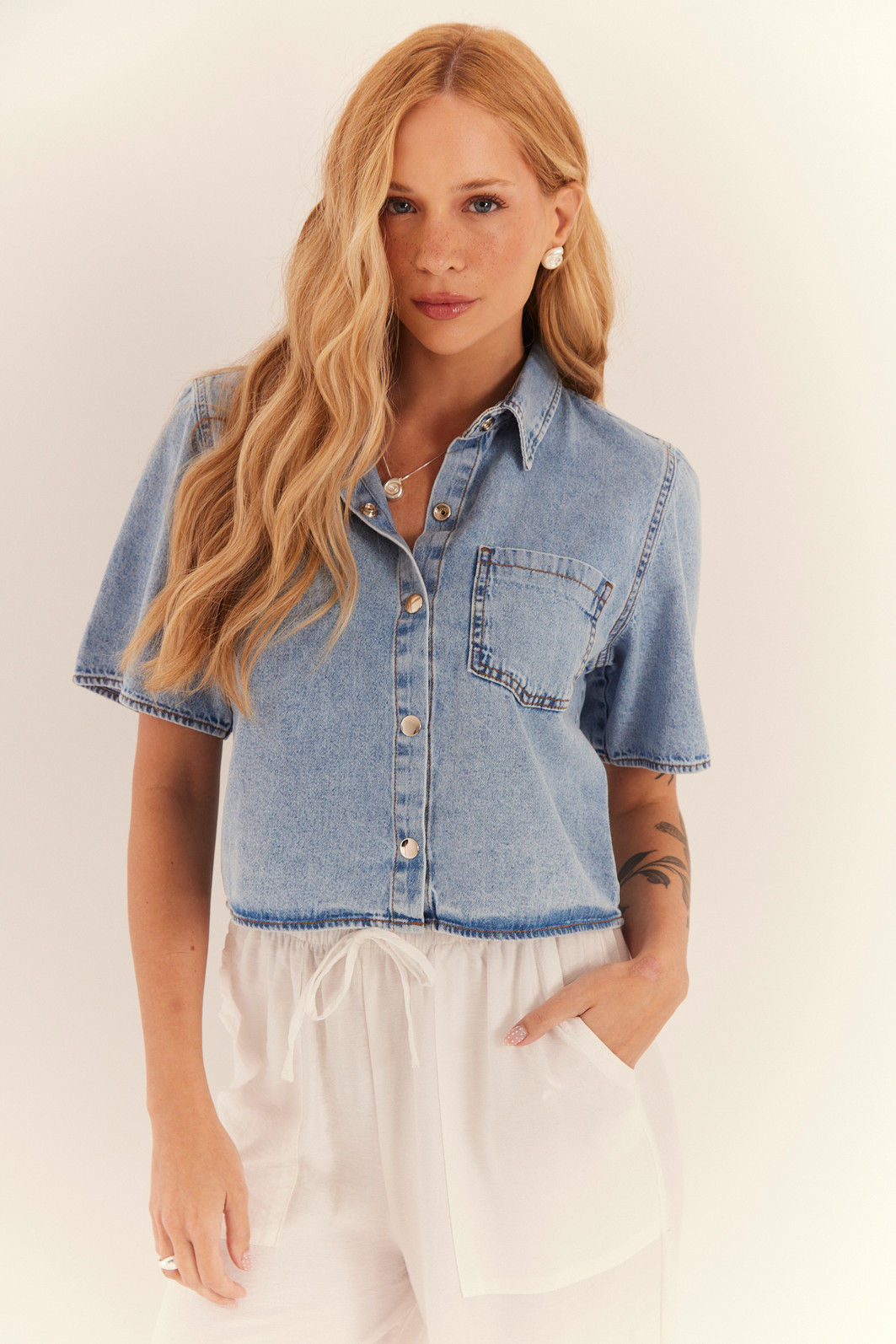 A peça perfeita para quem ama unir conforto e estilo! Essa camisa jeans traz um visual moderno e despojado, com modelagem soltinha que valoriza o corpo sem perder a leveza. As mangas curtas amplas garantem liberdade de movimento e um caimento delicado, enquanto o bolso frontal e os botões adicionam charme e praticidade. Ideal para compor looks casuais cheios de personalidade, combine com saias, shorts ou calças de cintura alta e arrase em qualquer ocasião!