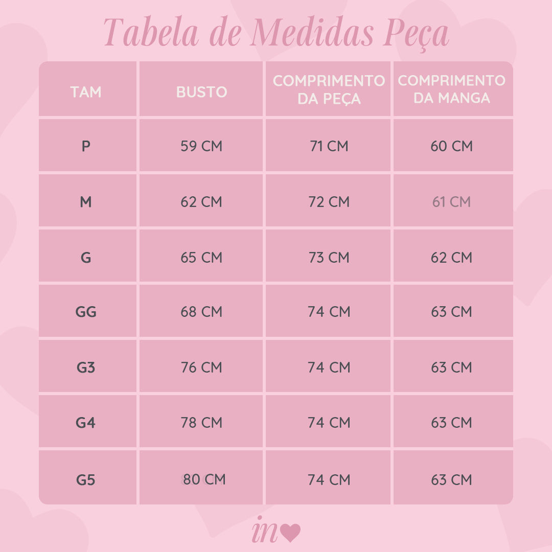 OBS: Para esclarecer suas dúvidas sobre tamanhos, aproveite nosso provador virtual!