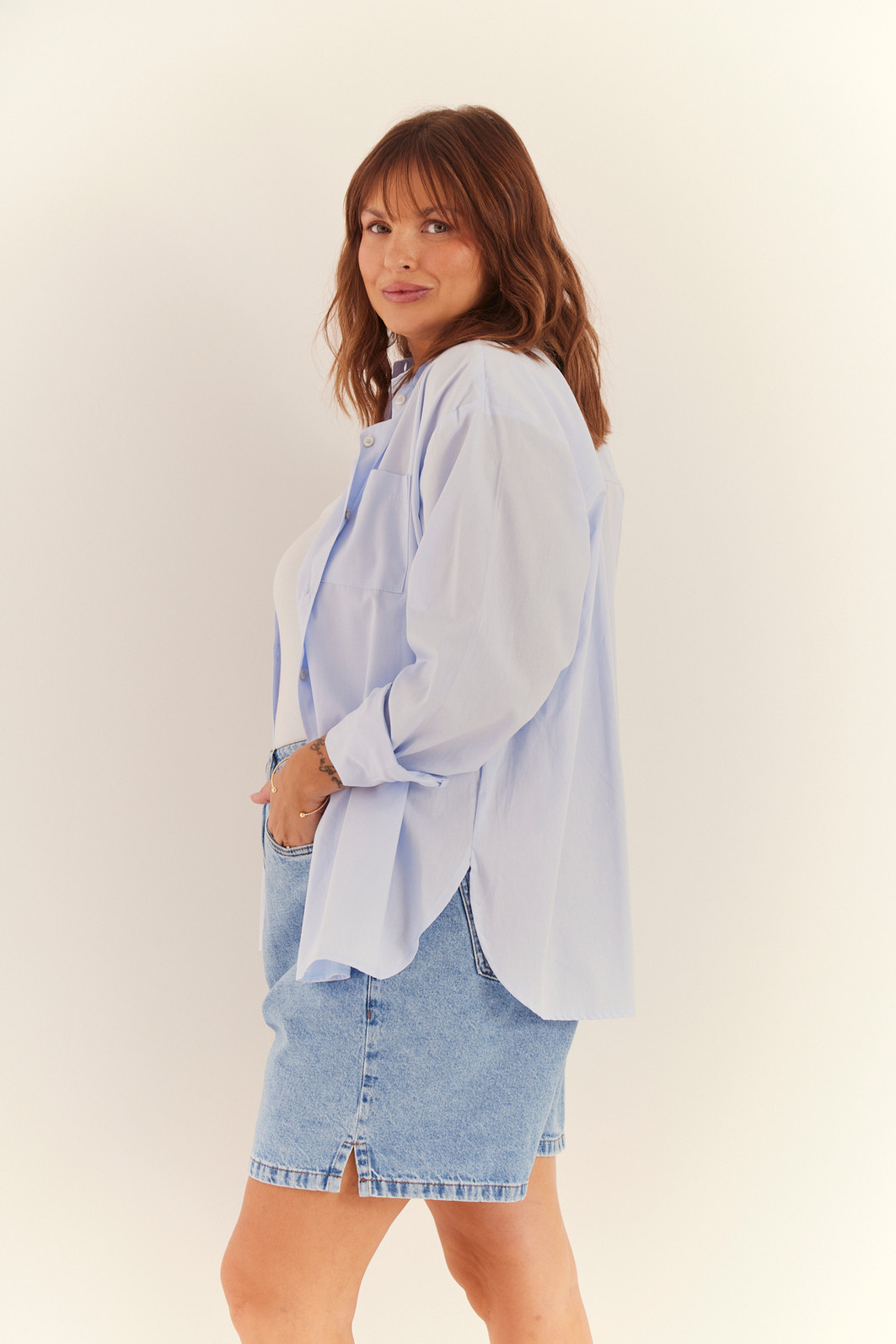Camisa modelagem de manga longa, com abertura frontal e punhos ajustáveis por botões. Os bolsos frontais laterais trazem praticidade, enquanto a modelagem oversized garante um caimento moderno e cheio de estilo. Confortável e versátil, é aquela peça curinga que transita com leveza entre produções casuais e composições mais elegantes.