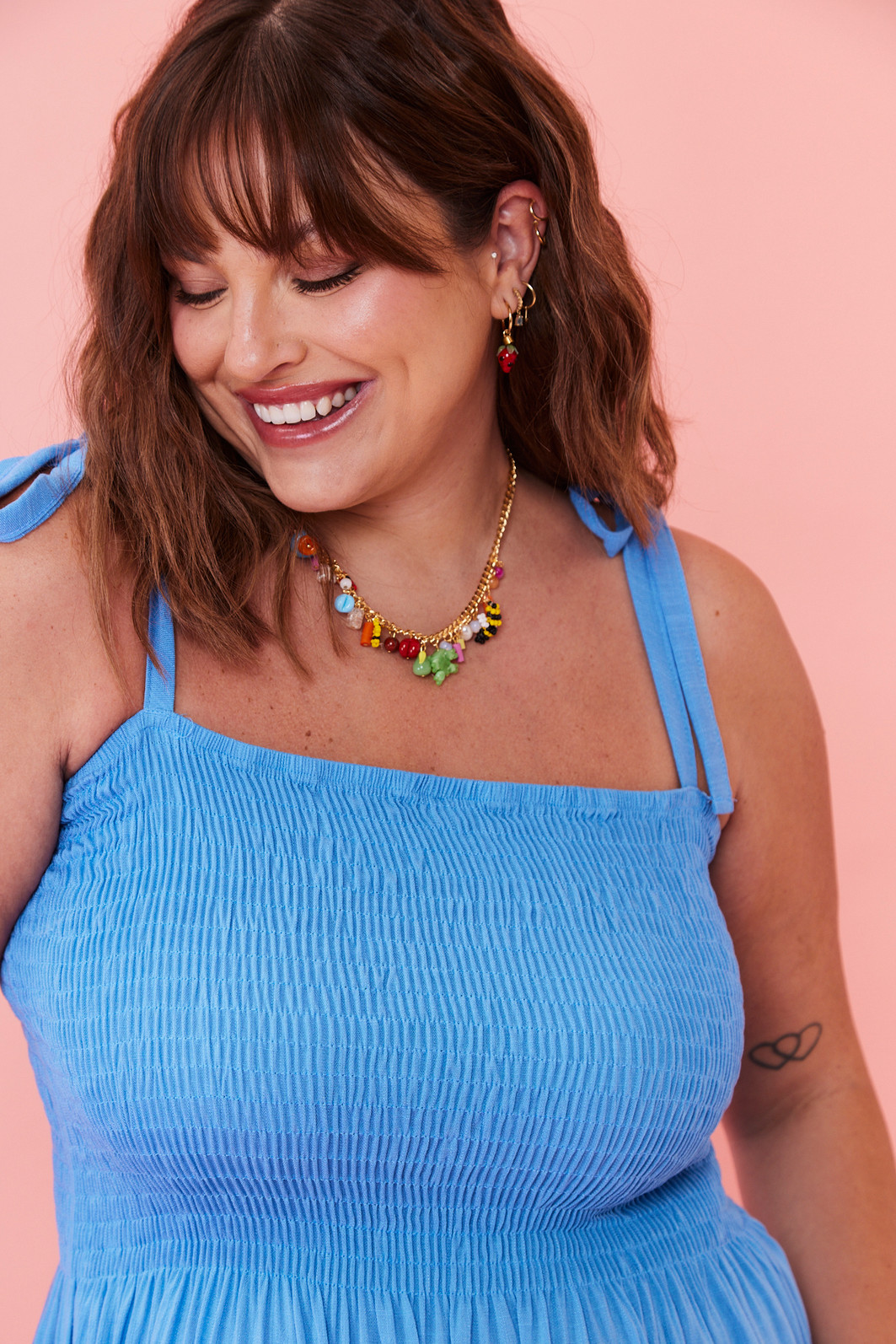 Colar em corrente dourada com banho de 3 milésimos de ouro 18k, antialérgico. Uma peça leve, criativa e cheia de personalidade. Os pingentes coloridos foram feitos à mão em vidro, miçangas, pérolas naturais e pedras diversas, formando pequenas frutas, bichinhos e formas orgânicas que trazem alegria e autenticidade ao look. É o colar perfeito para quem gosta de misturar arte e humor no dia a dia, sem abrir mão da qualidade. Hipoalergênico e livre de níquel.