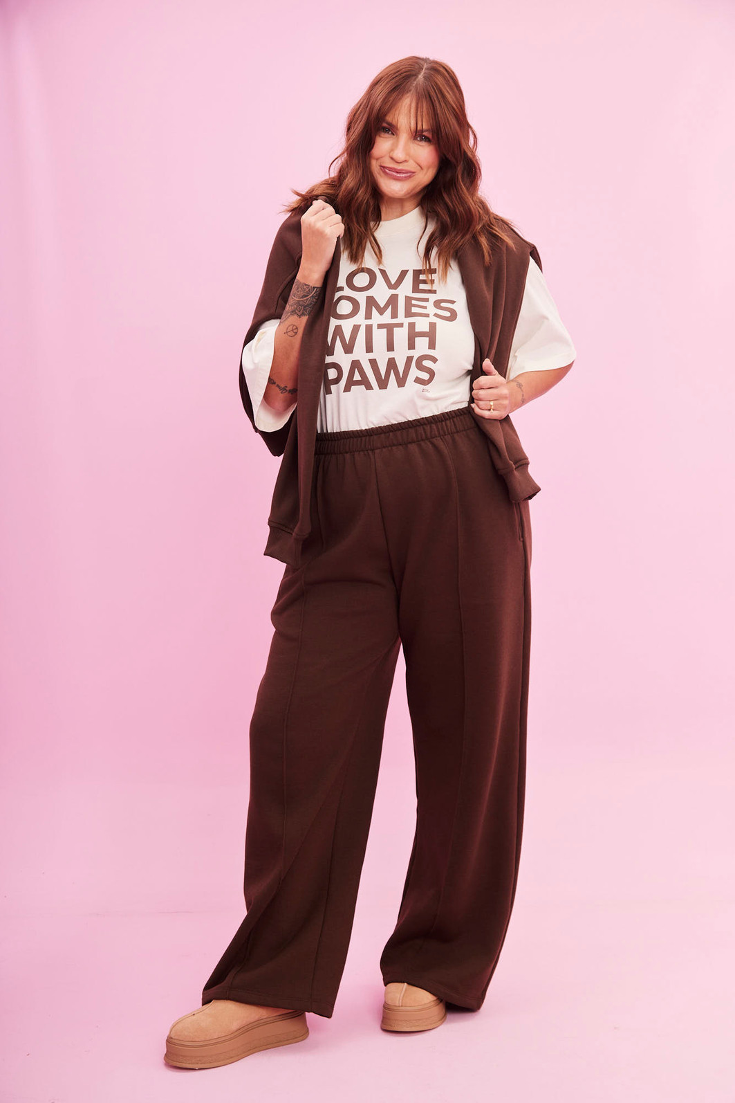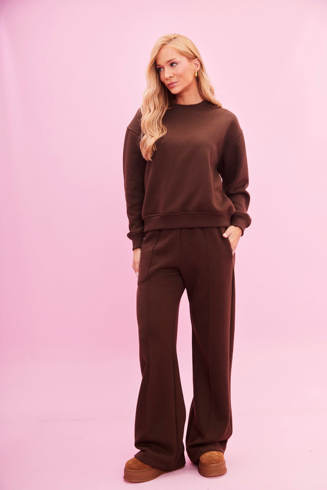 Possui calça elástico na cintura, garantindo conforto e um caimento reto que valoriza o corpo sem abrir mão da praticidade. Ideal para quem quer se manter aquecida e estilosa na temporada. Já o casaco possui toque macio e aconchegante, ele abraça o corpo e garante aquela sensação quentinha ao longo do dia. Possui acabamento em ribana na gola e nos punhos, proporcionando um caimento ajustado e moderno.