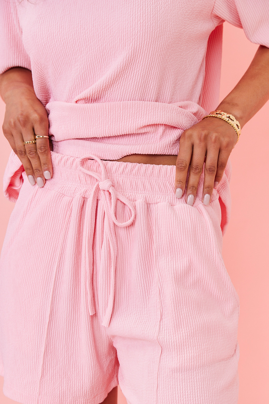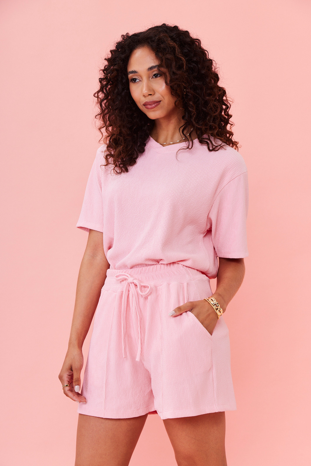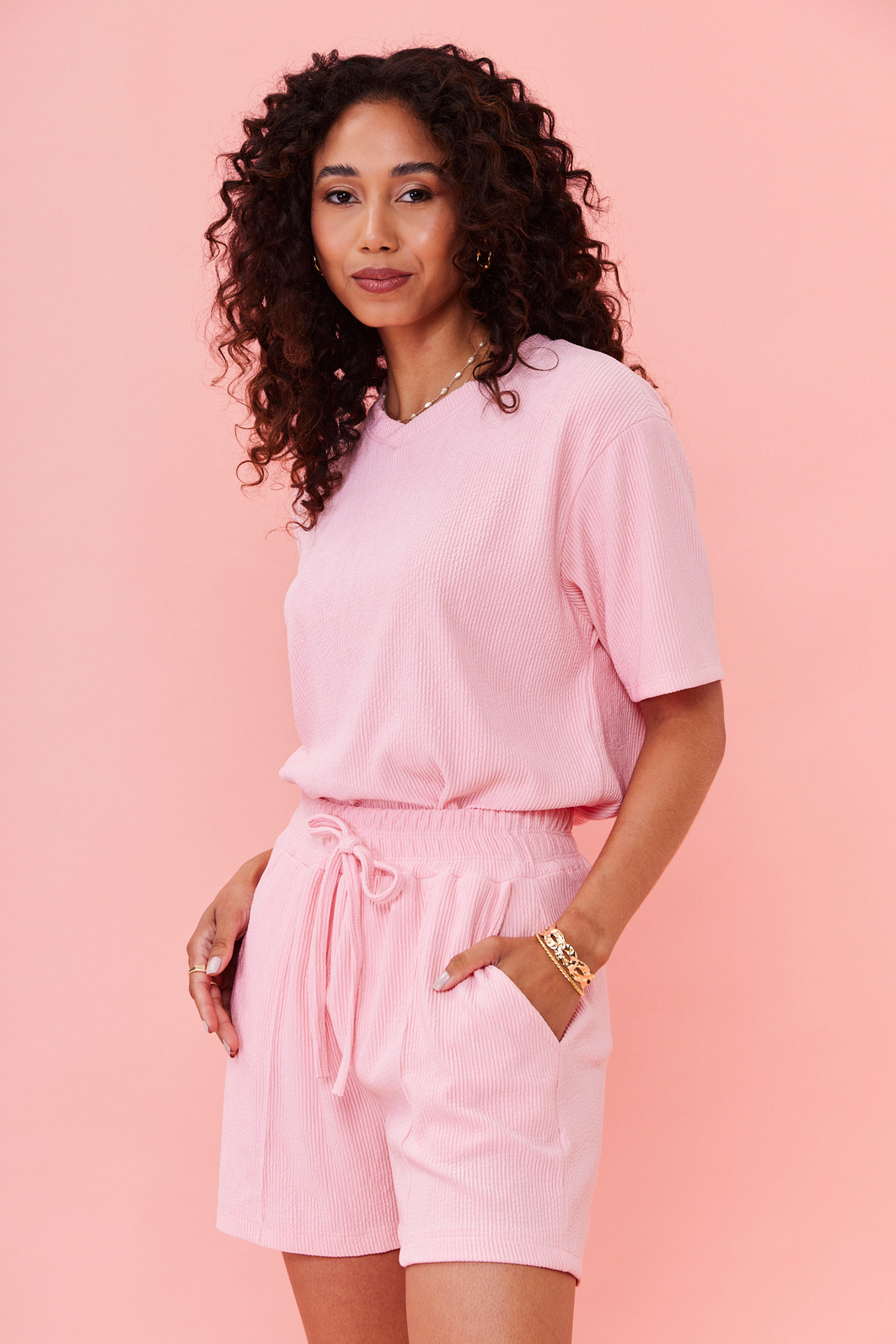 Conforto e estilo se unem neste conjunto casual confeccionado em malha canelada. Composto por uma blusa de mangas curtas e gola redonda, e um shorts com cós elástico e amarração ajustável, essa peça é perfeita para o dia a dia. O tecido leve e macio proporciona liberdade de movimento, enquanto o design moderno garante um visual descomplicado e cheio de charme. Ideal para momentos de lazer ou produções mais despojadas.
