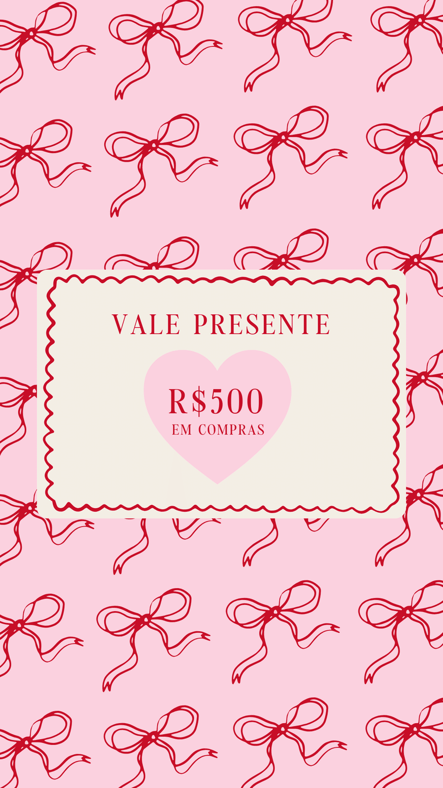 Vale presente In Love veio para voce presentear quem voce ama. Coloque na observação do pedido o nome da pessoa que você deseja presentar. Assim conseguimos direcionar para a pessoa. Fazemos um cupom especial para essa pessoa usar em nosso site!!!
