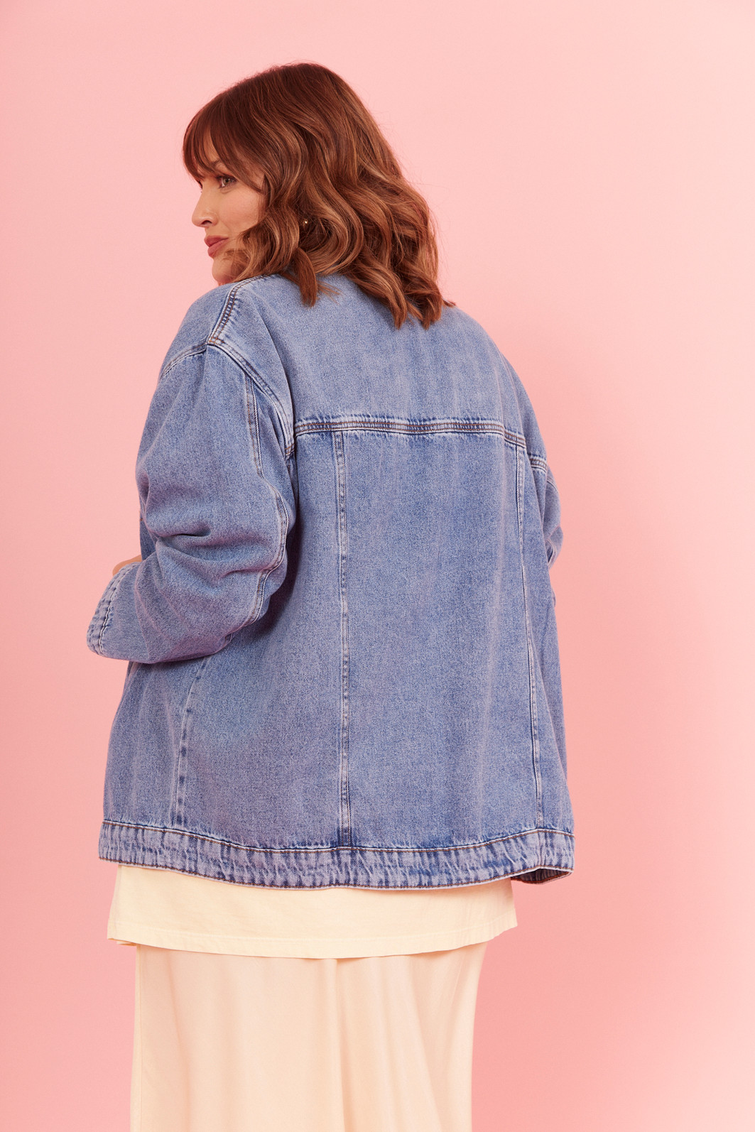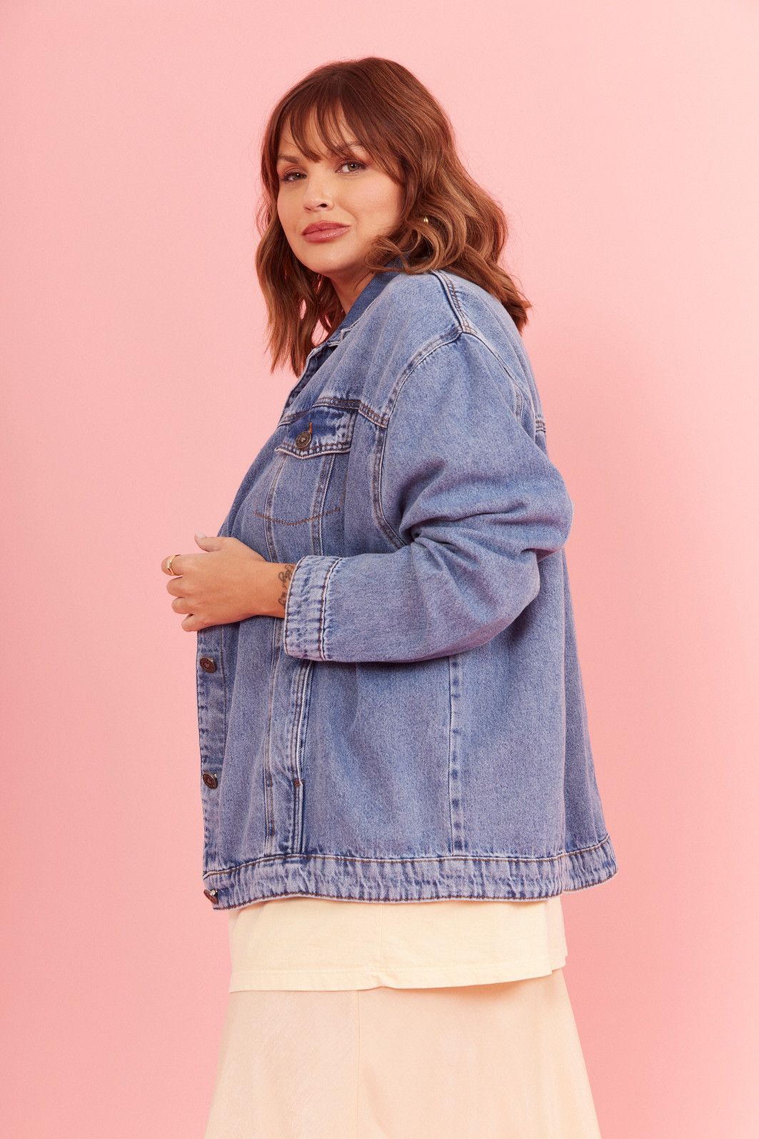 Jaqueta jeans com modelagem oversized, perfeita para um visual despojado e cheio de estilo. Prática e moderna, é aquela peça curinga que transforma qualquer look e garante personalidade na produção.