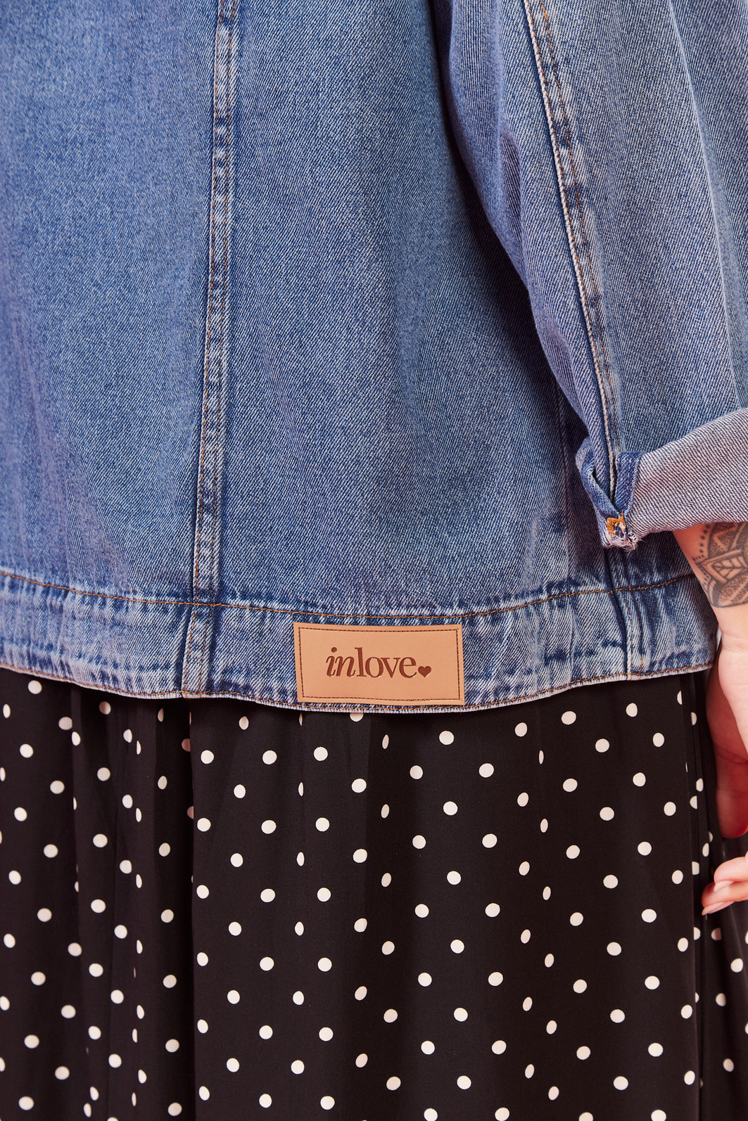 Jaqueta jeans com modelagem oversized, perfeita para um visual despojado e cheio de estilo. Prática e moderna, é aquela peça curinga que transforma qualquer look e garante personalidade na produção. Possui dois bolsos frontais.