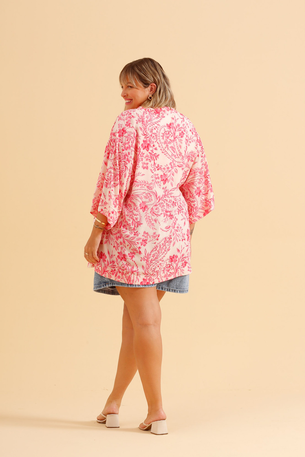 Um kimono leve, estiloso e cheio de personalidade. Com caimento fluido e mangas amplas, ele traz movimento e conforto na medida certa. A estampa é totalmente personalizada, pensada para valorizar cada detalhe da peça com um toque artístico e exclusivo. Perfeito para sobrepor looks básicos ou complementar produções mais elaboradas, ele é aquele tipo de peça que transforma o visual com elegância e originalidade.