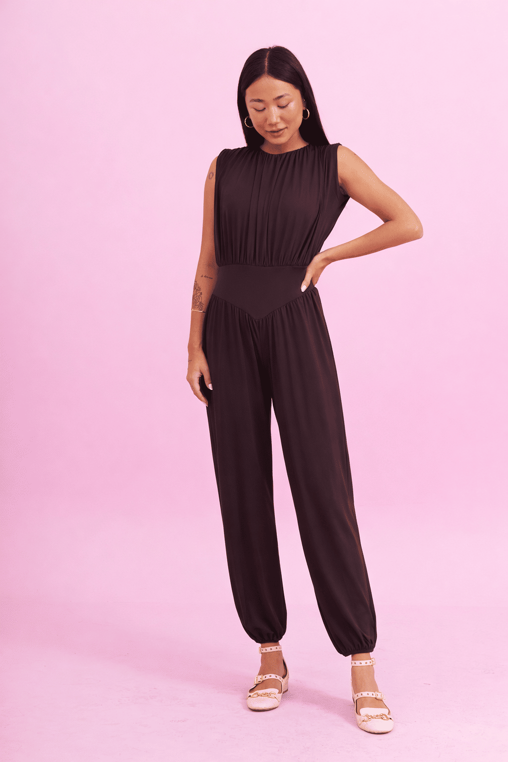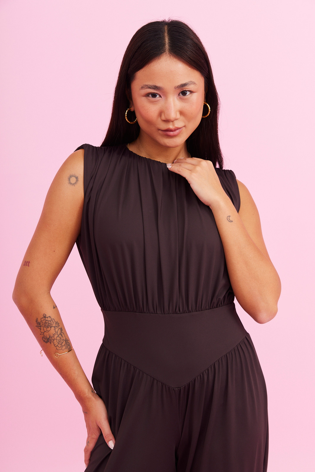 Nosso macacão é a definição perfeita de conforto aliado à elegância. Com modelagem soltinha e caimento leve, ele valoriza a cintura sem marcar, proporcionando liberdade de movimento e um visual sofisticado sem esforço. A parte superior possui um caimento fluido e elegante, enquanto a cintura marcada cria equilíbrio na peça, destacando a silhueta de forma confortável. A calça com modelagem ampla e acabamento ajustado na barra traz modernidade e um toque fashion ao look.