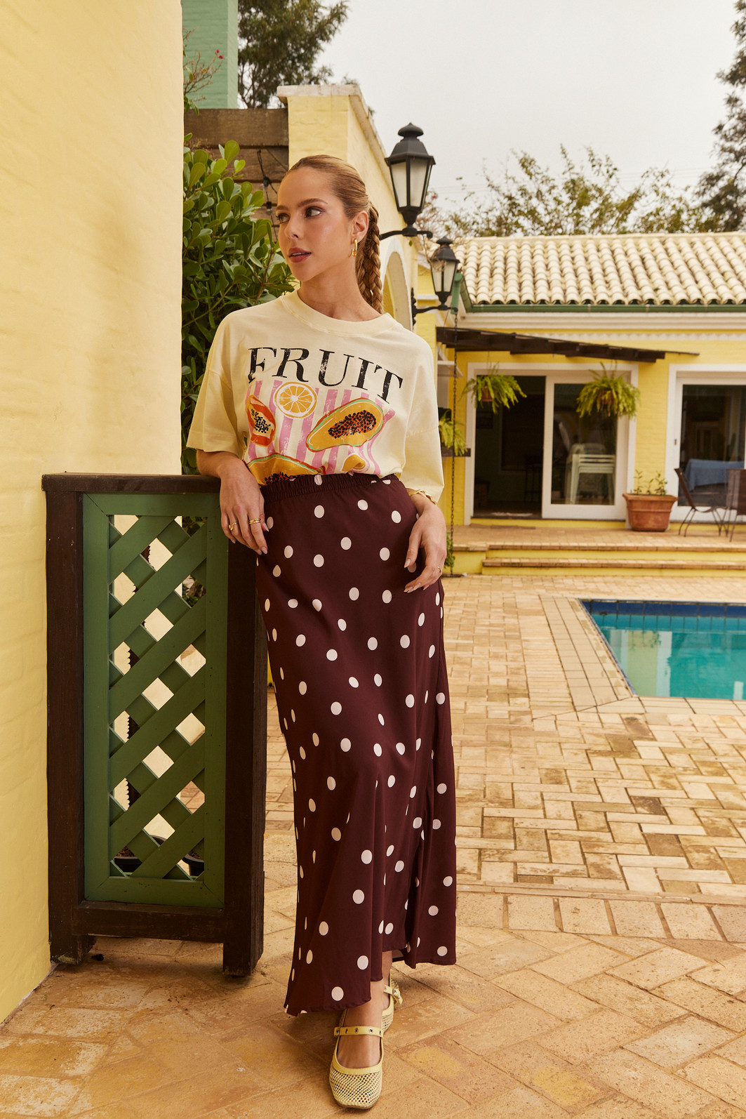 Com leveza e elegância, nossa saia midi alongada é perfeita para compor looks cheios de charme ✨ Feita em viscose, ela tem caimento fluido e confortável, com elástico na cintura que garante ajuste ideal. A modelagem de cintura alta valoriza a silhueta, enquanto o babado na barra traz um movimento delicado e um toque moderno à peça. Um clássico versátil para te acompanhar em todas as ocasiões.