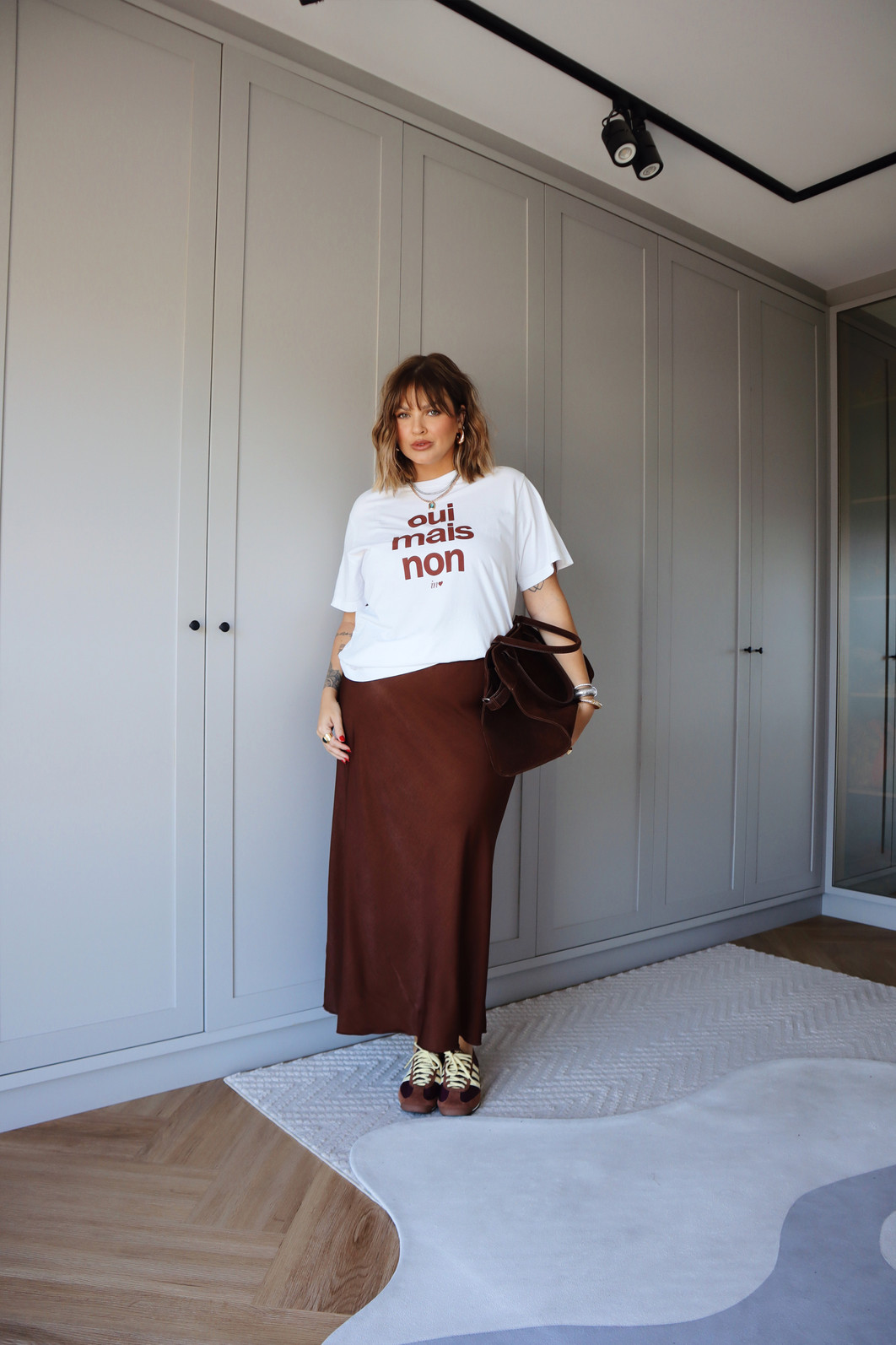 Saia midi alongada com elástico na cintura, proporcionando conforto e ajuste perfeito. Seu caimento leve e fluido confere um visual moderno e elegante. A modelagem de cintura alta e o babado na barra adicionam um toque de charme.