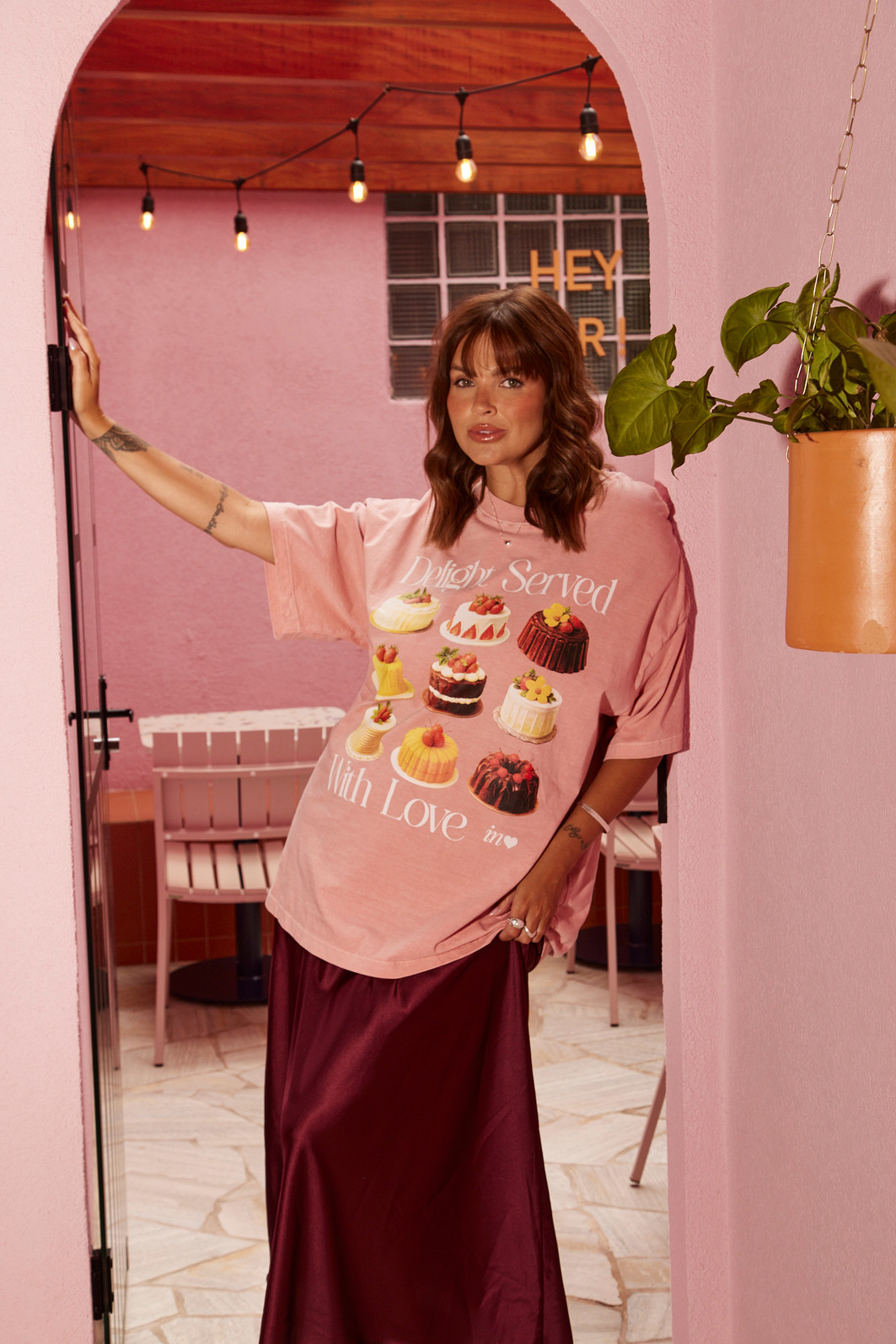 Nossa t-shirt oversized é perfeita para quem busca conforto e estilo. Com modelagem ampla e estampa exclusiva na frente, ela traz um toque moderno e descolado ao look. O decote em ribana garante um caimento confortável, e as mangas curtas proporcionam leveza e liberdade de movimento. Uma peça básica nada básica, ideal para o dia a dia com muito charme e autenticidade.