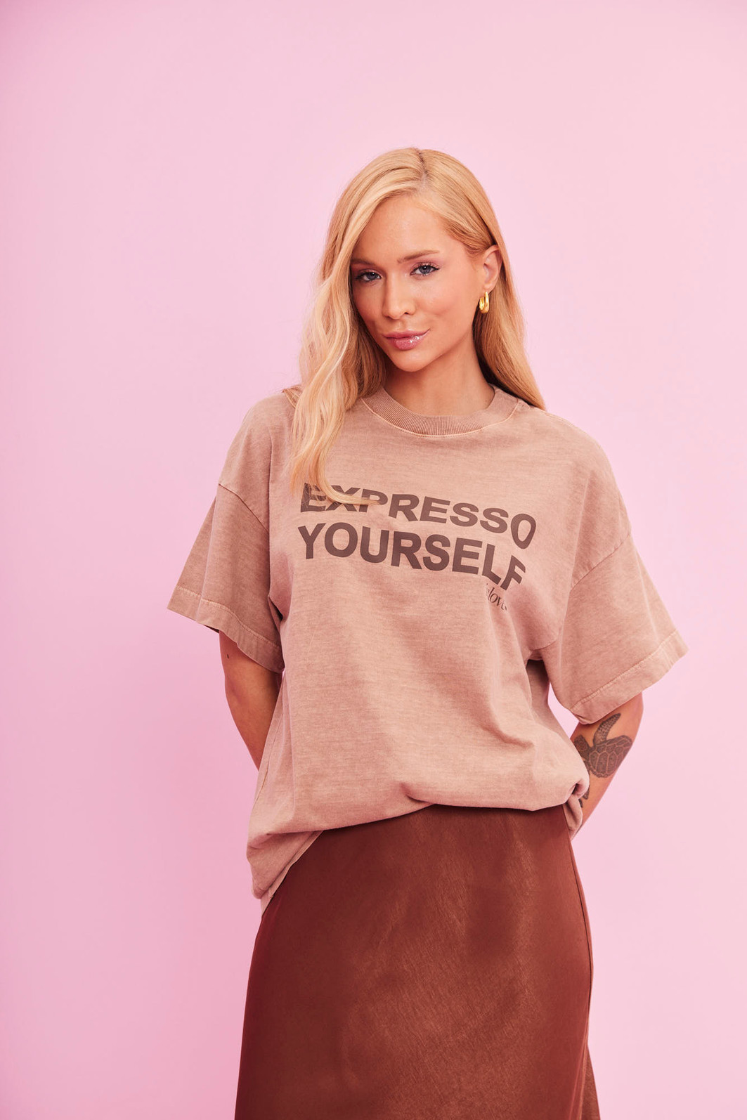 Nossa t-shirt oversized é perfeita para quem busca conforto e estilo. Com modelagem ampla e estampa exclusiva na frente, ela traz um toque moderno e descolado ao look. O decote em ribana garante um caimento confortável, e as mangas curtas proporcionam leveza e liberdade de movimento. Uma peça básica nada básica, ideal para o dia a dia com muito charme e autenticidade.