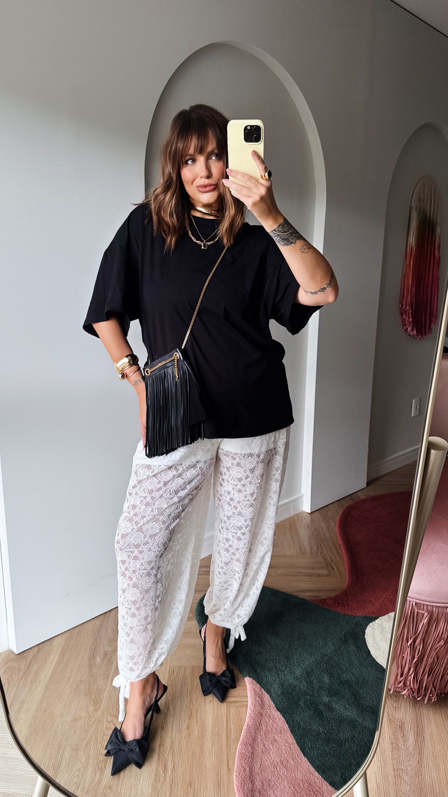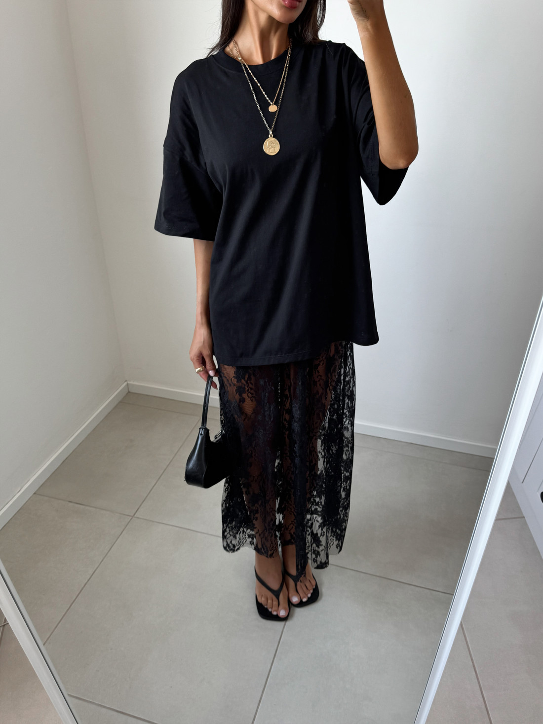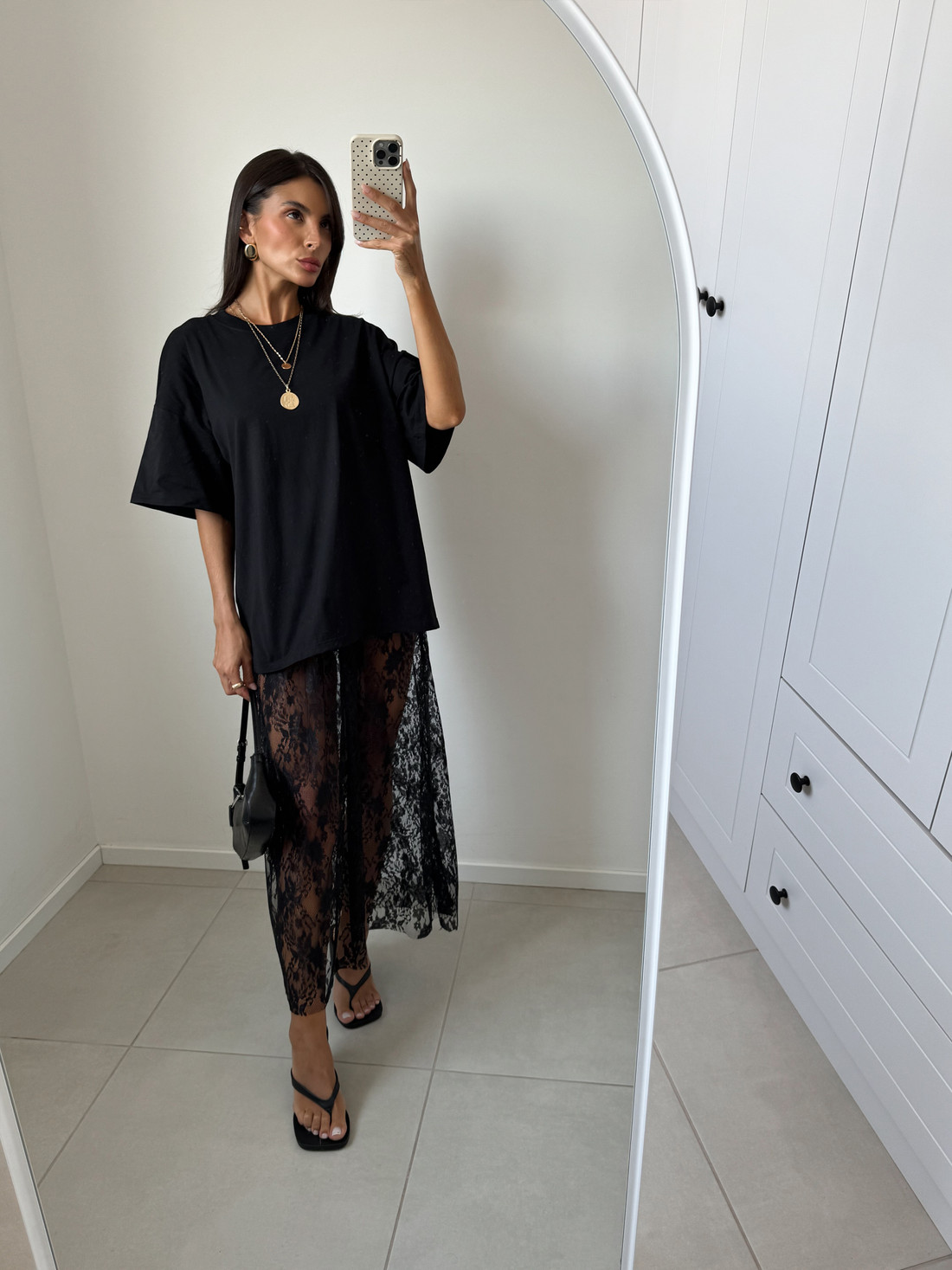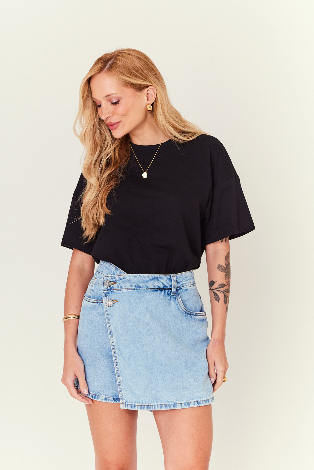 T-shirt oversized lisa, com modelagem ampla e caimento reto que garante conforto e estilo em qualquer ocasião. Confeccionada em meia malha de alta qualidade, possui toque super macio e leve. Ideal para quem busca praticidade, liberdade de movimento e um visual moderno e descomplicado.