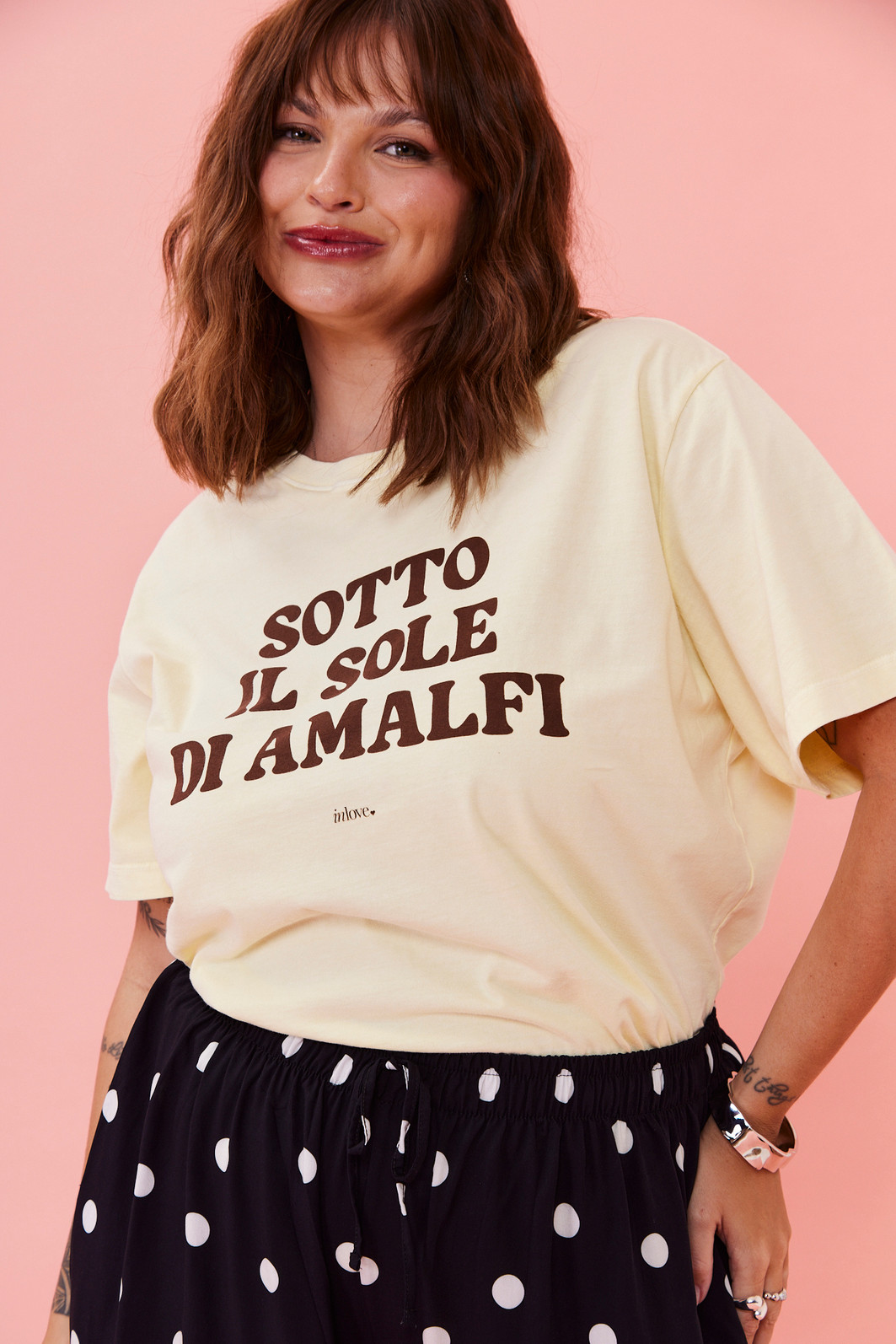 Nossa t-shirt é uma modelagem slim com estampa exclusiva na frente, ela é a peça perfeita para quem busca conforto e estilo! Com mangas curtas que garantem frescor e liberdade de movimento. O decote de ribana adiciona um toque de sofisticação e um ajuste confortável, enquanto a estampa. Combine com jeans, shorts ou saias.