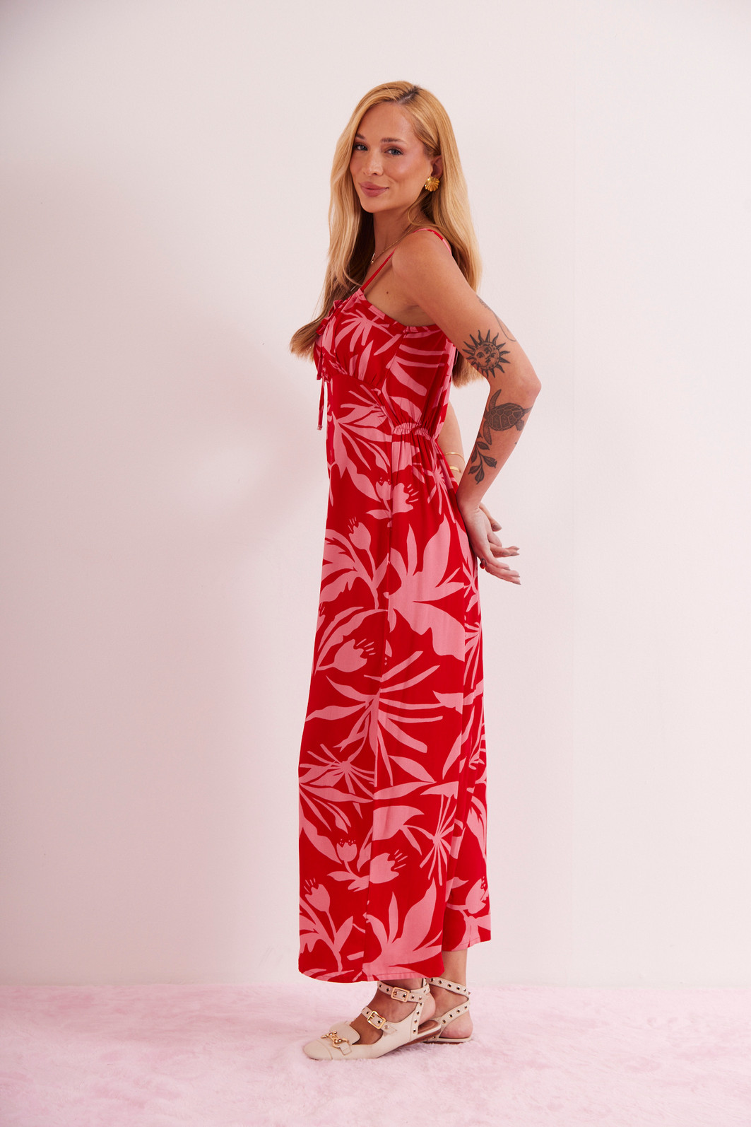 Vestido midi em viscose estampado, de alças reguláveis que garantem ajuste perfeito e delicadeza ao visual. O detalhe em friso no busto permite uma amarração charmosa, proporcionam conforto e caimento impecável. Leve e feminino, é a peça ideal para compor produções cheias de graça e sofisticação.