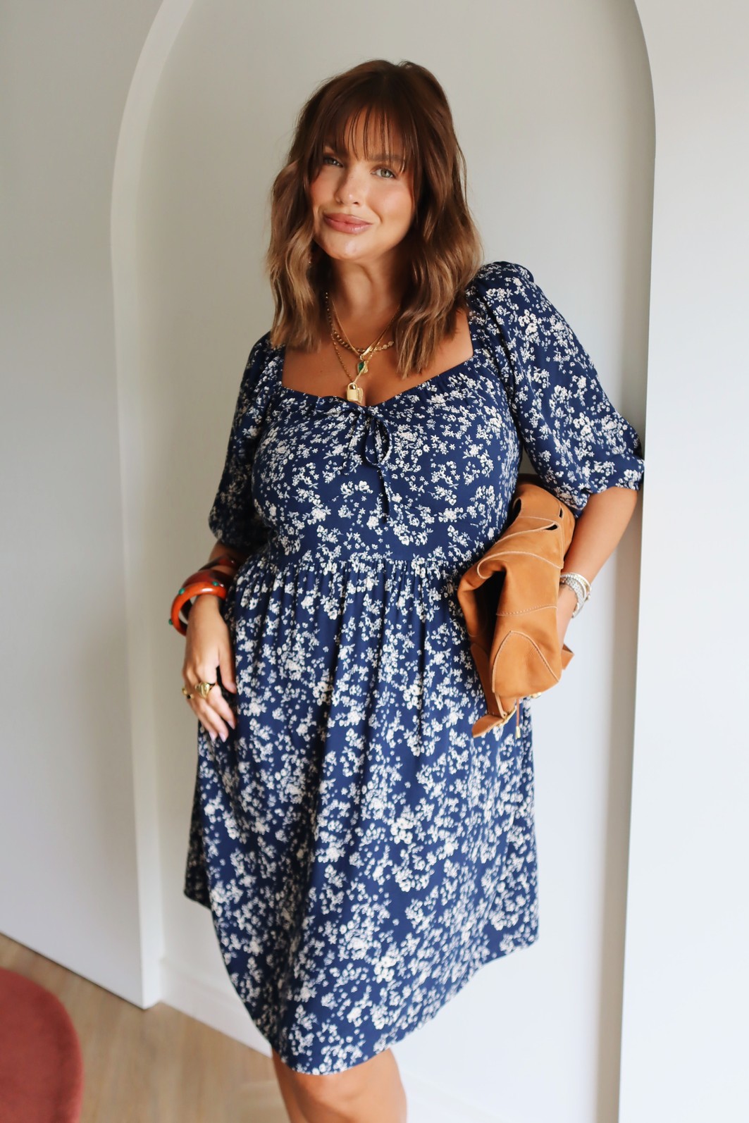 Vestido com decote que possui o detalhe da amarração e mangas curtas, trazendo um toque de delicadeza e sofisticação. O comprimento curto confere elegância. Perfeito para ocasiões especiais, esse vestido combina feminilidade e estilo de forma única. Possui elástico na parte das costas.