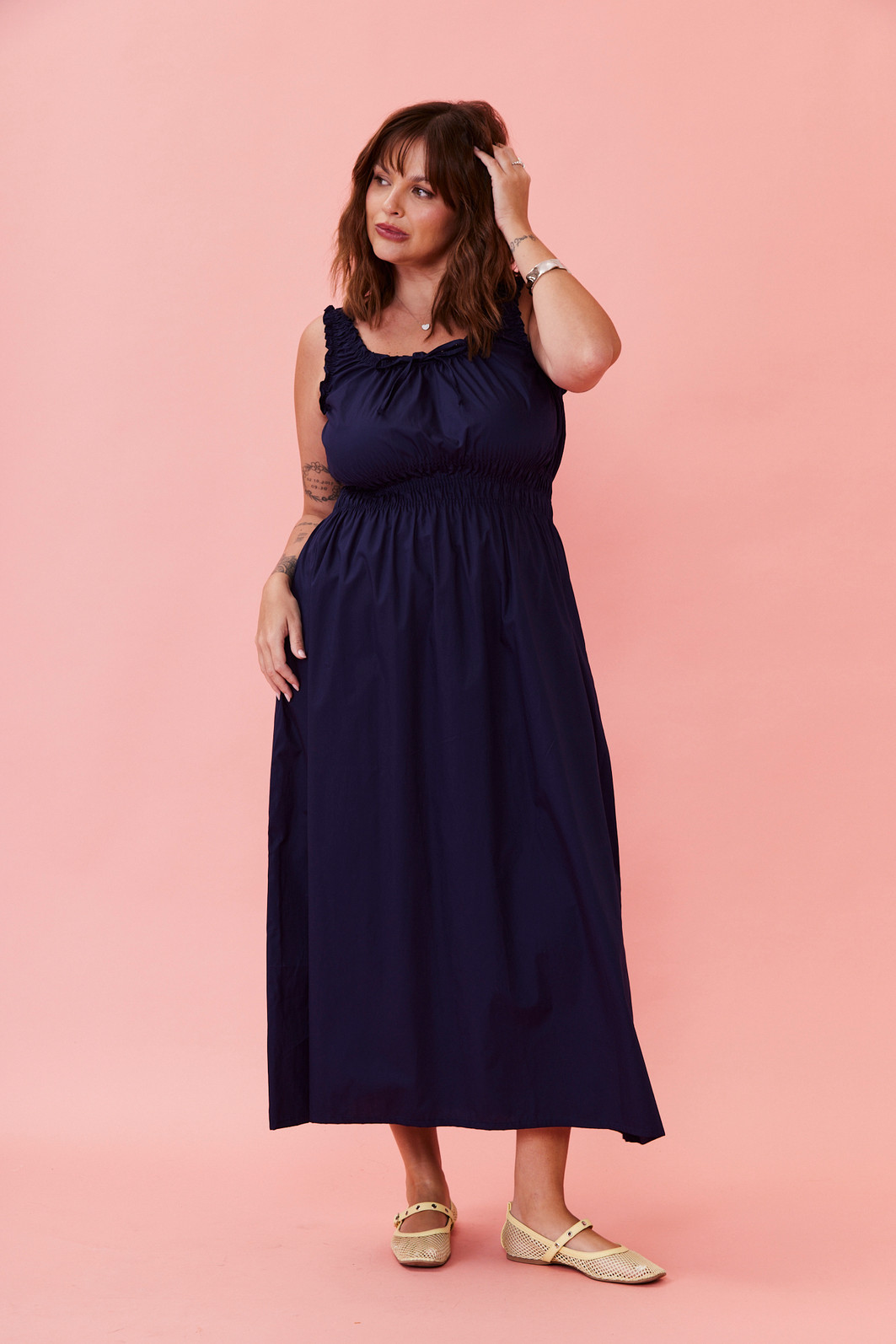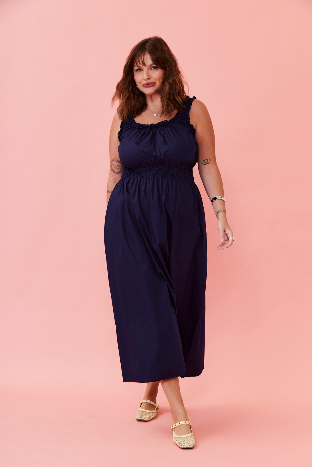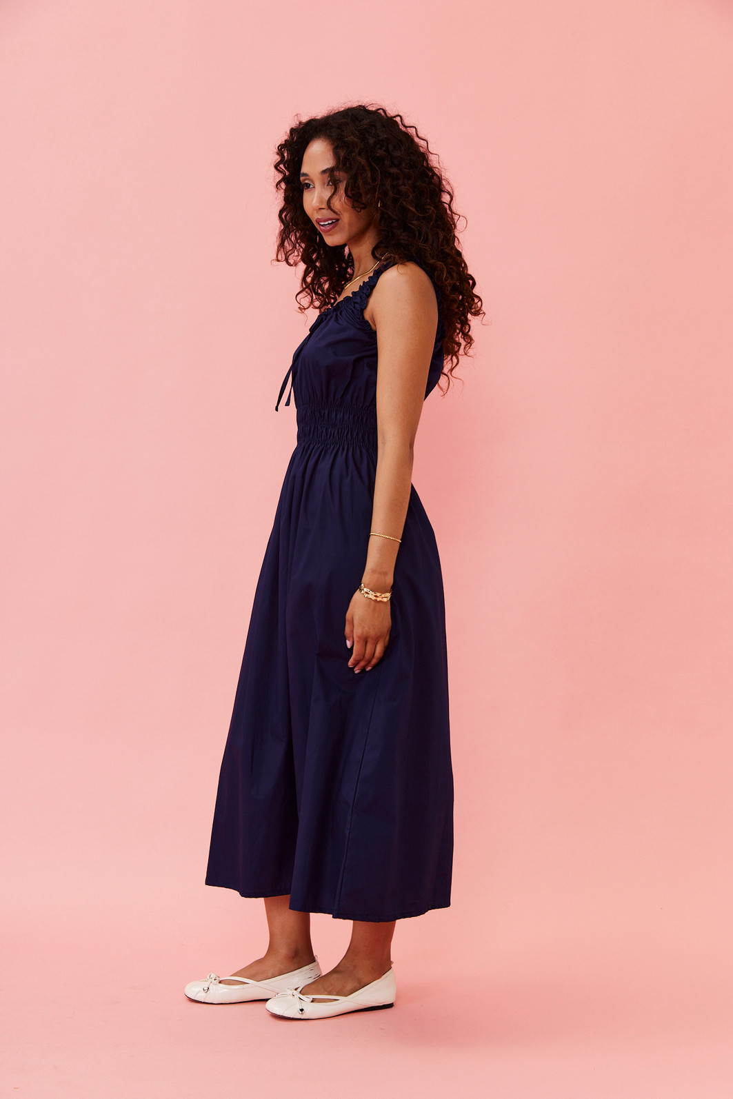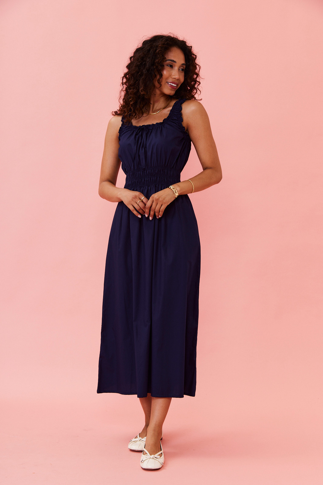 Este vestido midi é a escolha perfeita para quem busca conforto e estilo em uma única peça. Confeccionado em tecido leve e fresco, ele possui alças largas com acabamento em babados, decote arredondado com amarração e detalhe franzido no busto que valoriza o colo. A cintura com lastex proporciona excelente ajuste ao corpo, realçando a silhueta com muito conforto. A saia com caimento solto garante leveza e movimento, ideal para os dias mais quentes.