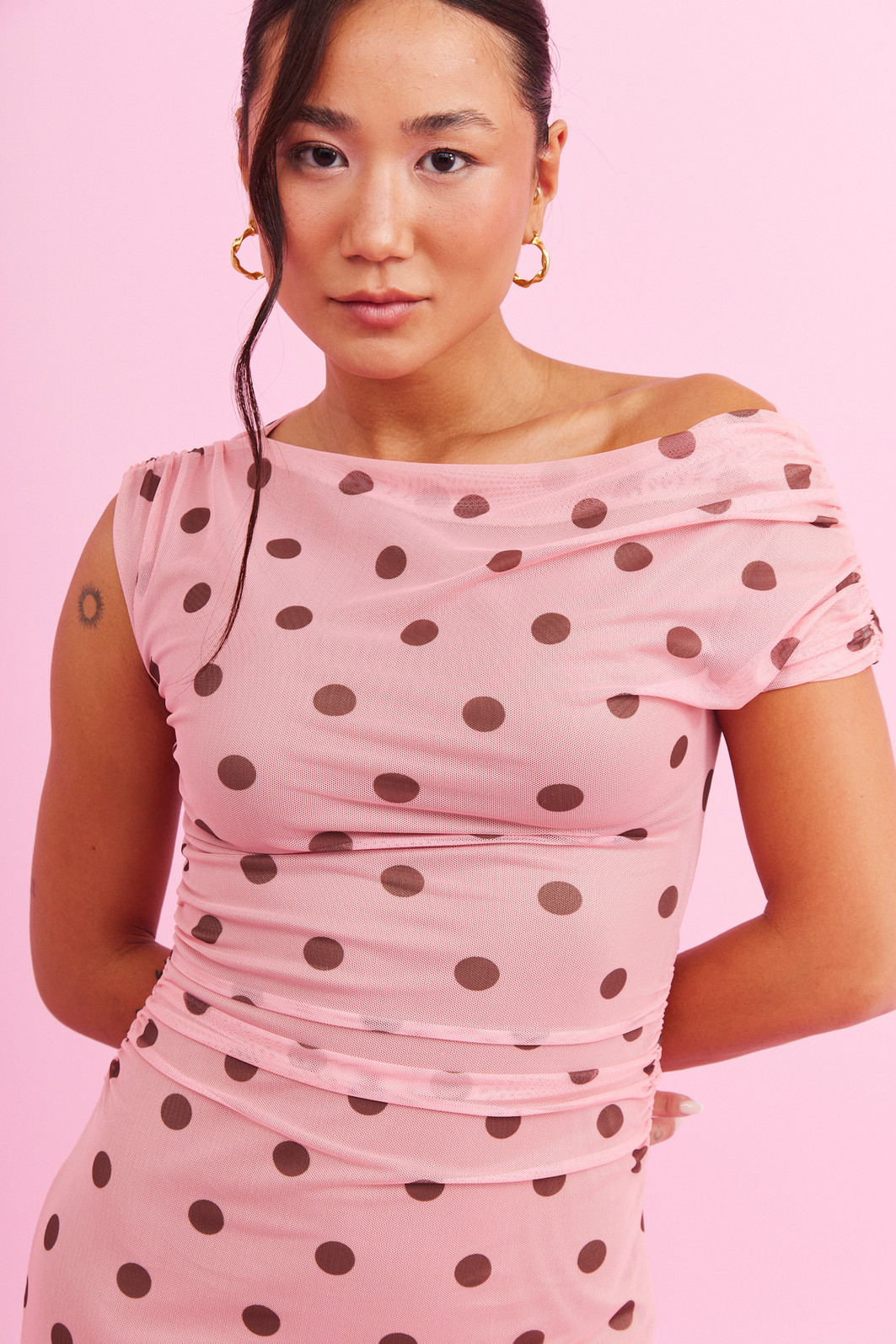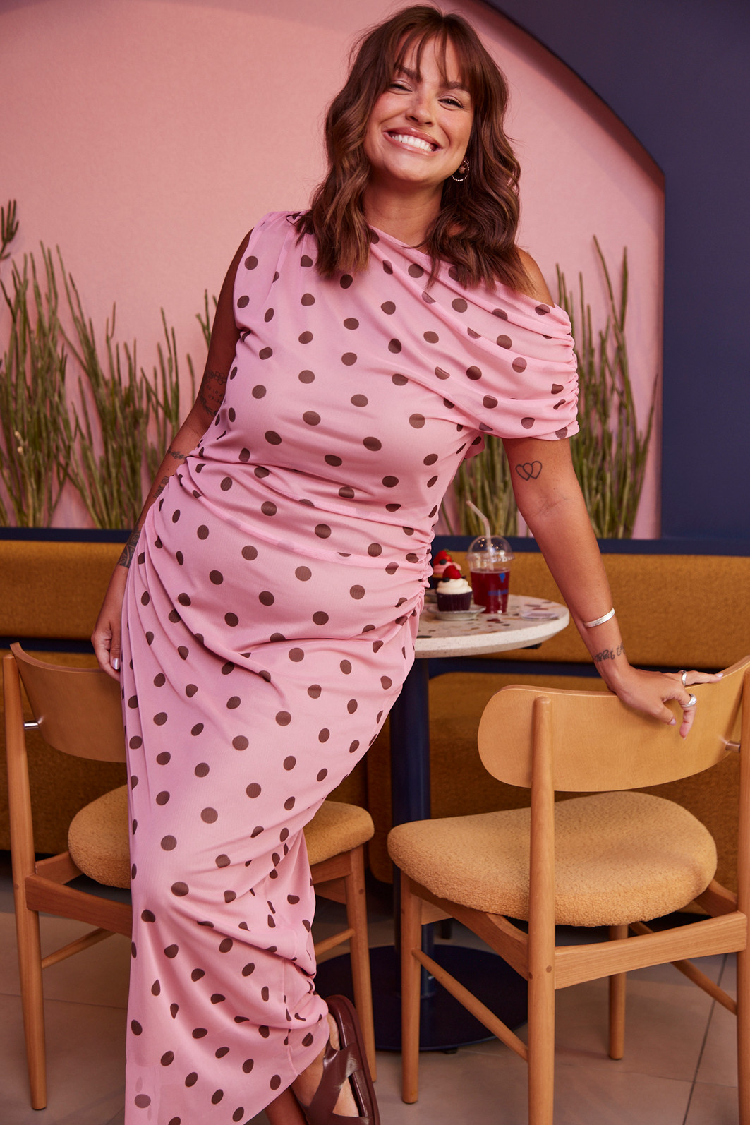 Vestido em póa marrom e fundo rosa. Confeccionado em tule um vestido midi delicado, nosso vestido traz originalidade e charme à peça. Possui forro para dar um conforto a mais na hora do uso, garantindo tambem a praticidade. O modelo equilibra perfeitamente elegância e romantismo, sendo ideal para ocasiões especiais ou produções cheias de estilo no dia a dia.