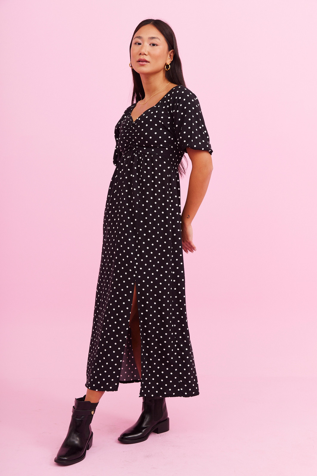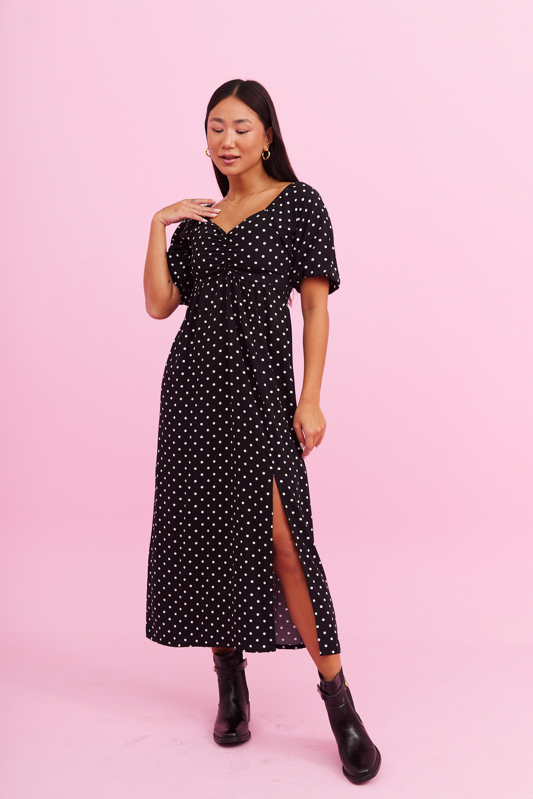 Vestido com decote princesa e mangas 3/4 bufantes, trazendo um toque de delicadeza e sofisticação. O comprimento midi confere elegância, enquanto o detalhe de fenda adiciona um charme extra à peça. Perfeito para ocasiões especiais, esse vestido combina feminilidade e estilo de forma única. Possui lastex na parte de trás do vestido dando uma firmeza a mais na hora de vestir. Trouxemos nessa estampa em póa que é sucesso e vocês amam.