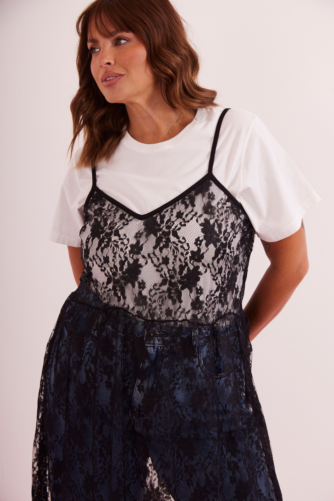 Nosso vestido em renda preto é puro encanto, sem forro, ele é ideal para usar como sobreposição, brincando com texturas e criando produções modernas e cheias de atitude. Um daqueles itens curingas pra amar e usar muito.
